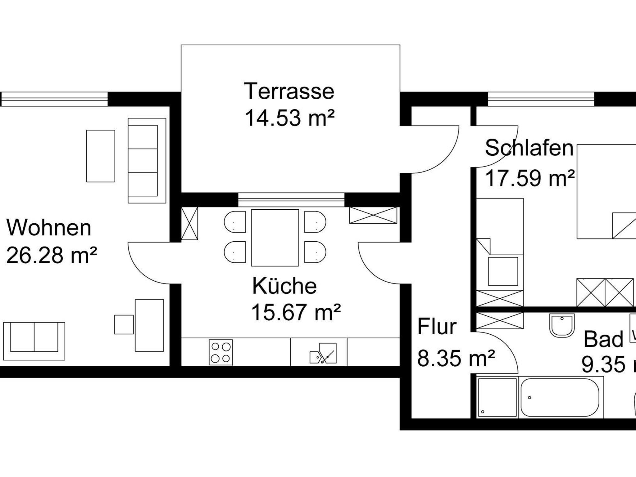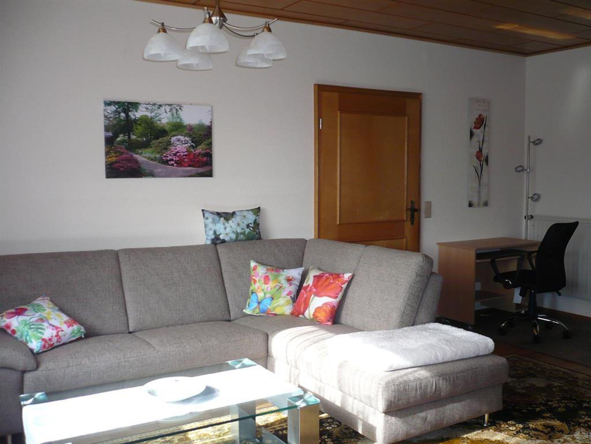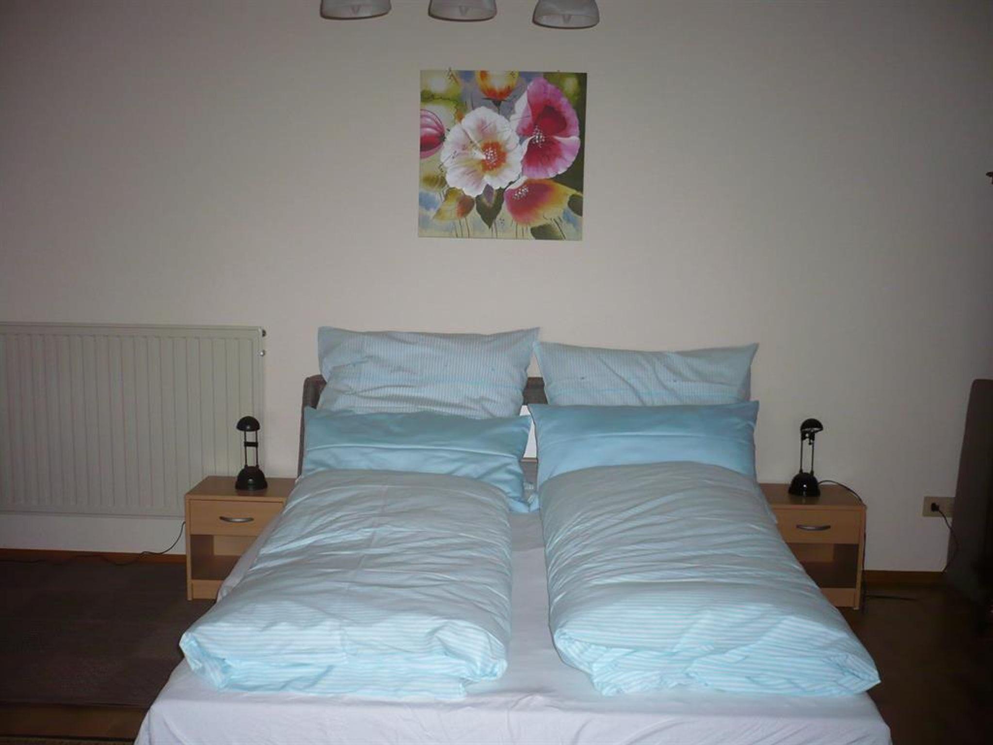 Die Wohnung mit Wohnzimmer, seperater Küche, Schlafzimmer und Bad mit Wanne u. Dusche bietet Platz für 2 Erwachsene und bis zu 3 Kinder (Beistellbett im SZ und zusätzliche Klappcouch im Wohnzimmer).