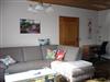 Das Wohnzimmer ist ausgestattet mit Schrank, Sitzecke, Couchtisch, Klappcouch, Schreibplatz, Sat-Fernseher und Stereoanlage.