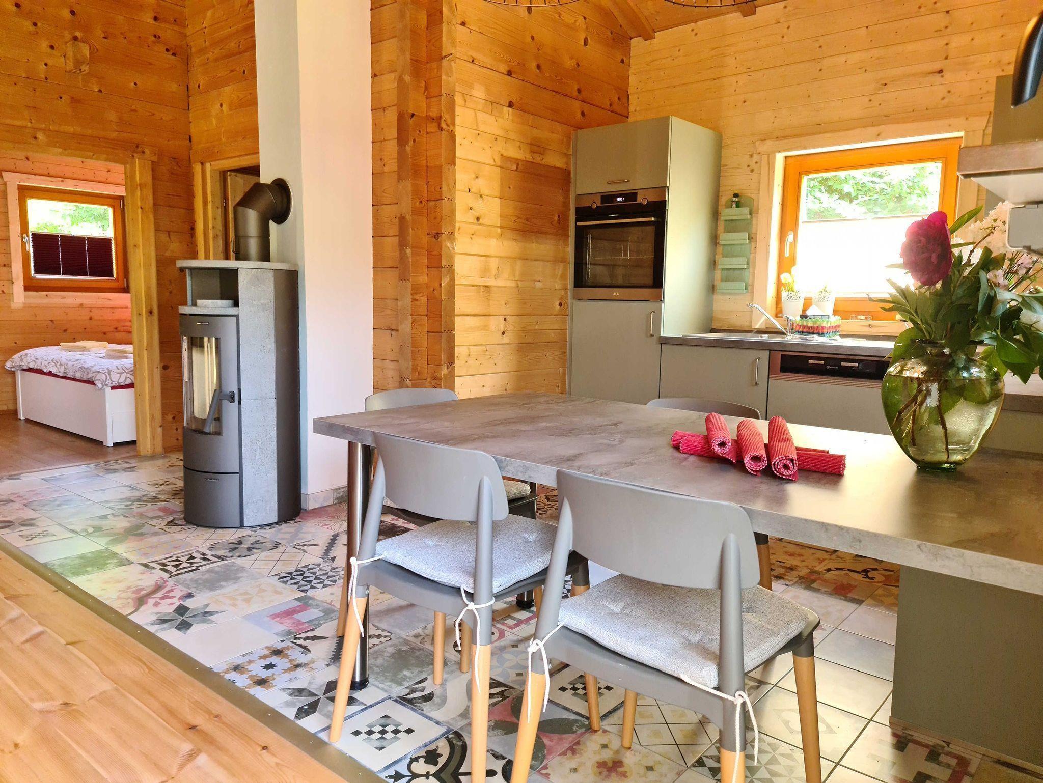 Ausreichend Platz für Familien, möblierte Terrasse mit Grill, rustikale Ausstattung mit Kaminofen als Hauptheizung und Fußbodenheizung im Bad und Küchenbereich.