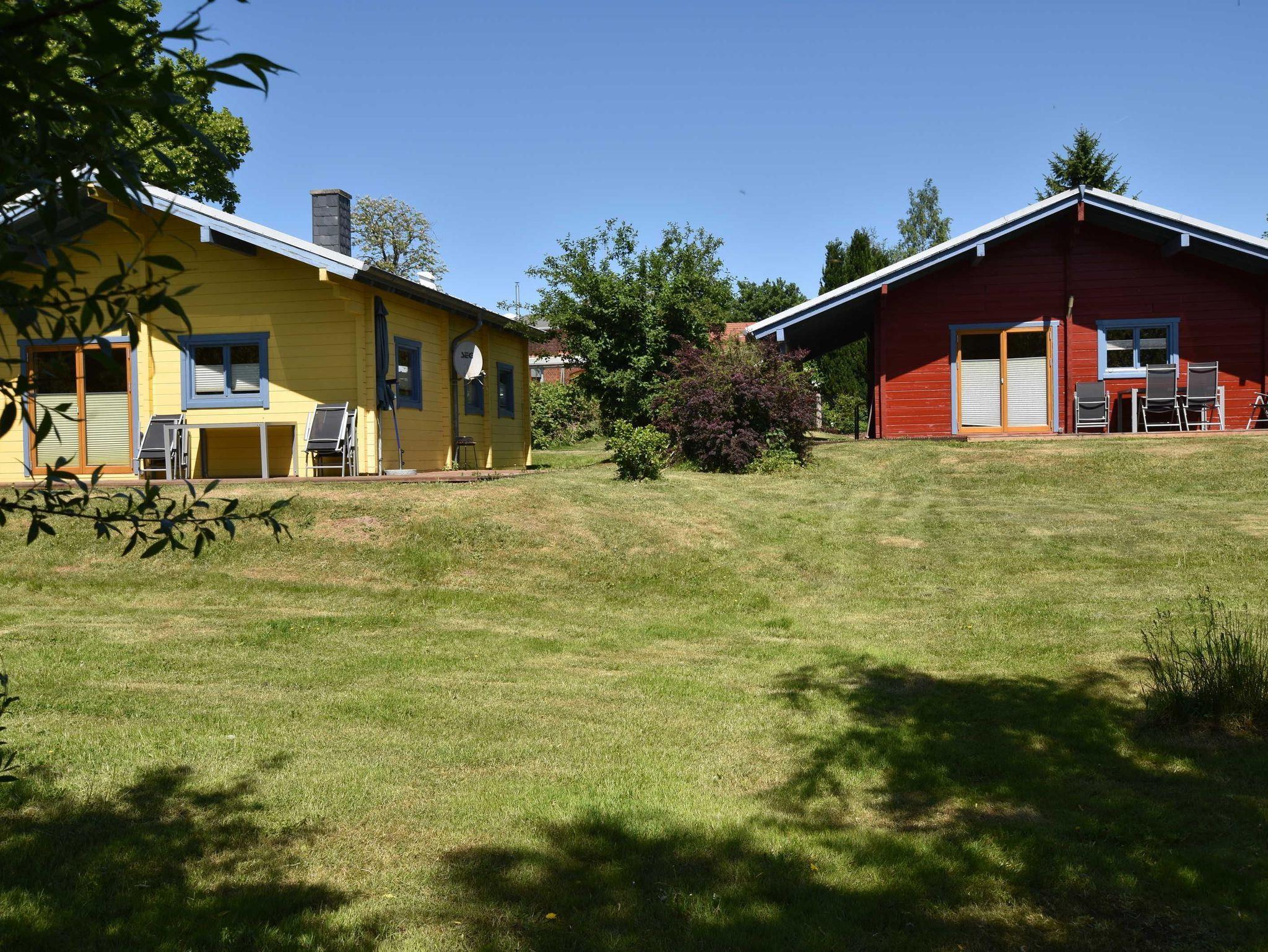 Auf dem 1600m² großen Grundstück stehen drei je 50m² große Holzhäuser - Ostsee Land Ferienhäuser mit Kamin, Podsauna und Waschmaschine.
