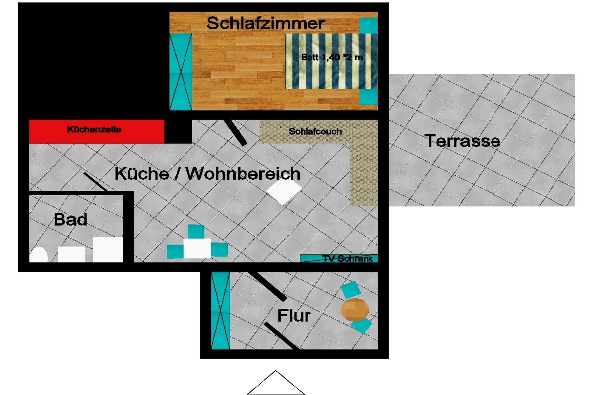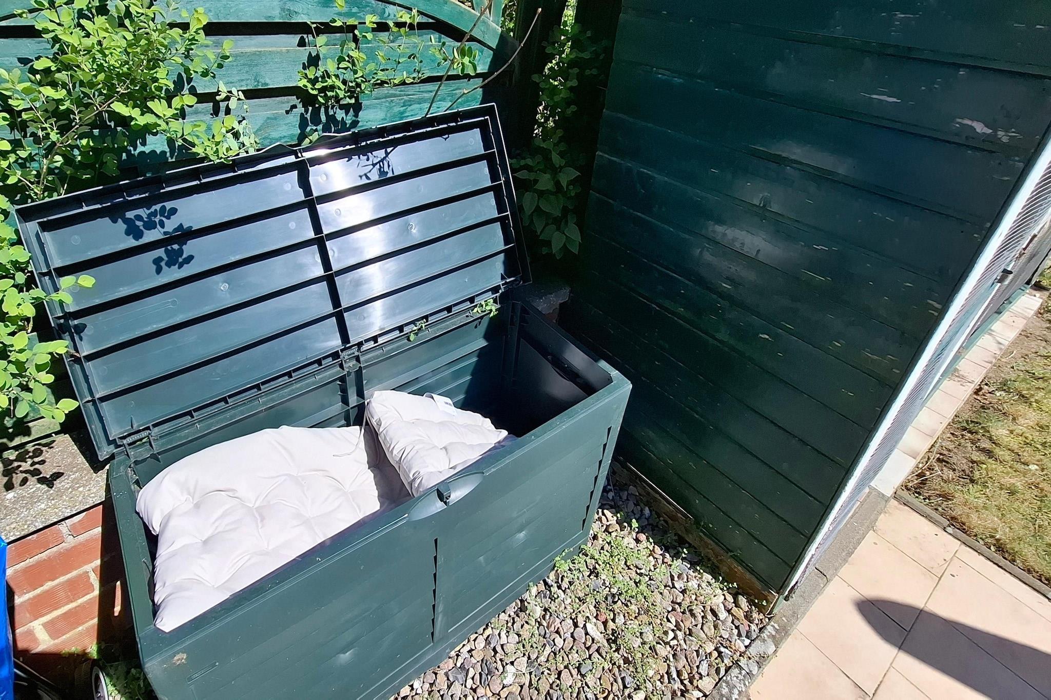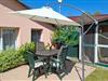 Stueetage: (åbent køkken(kogeplade(Komfur med fire kogeplader, glaskeramisk), elkedel, brødrister, emhætte, kaffemaskine, ovn, mikrobølgeovn, opvaskemaskine , køleskab, fryser, vaskemaskine), Stue/soveværelse(enkeltsovesofa(160 x 200 cm), Fjernsyn(fladskærm), spisebord, sofahjørne), soveværelse(dobbeltseng(dobbeltlagen, to enkeltdyner, 140 x 200 cm)), badeværelse(bruser, håndvask, toilet), Repos, varme) terrasse, have(deles med ejer), havemøbler, grill, parkering, Parasol