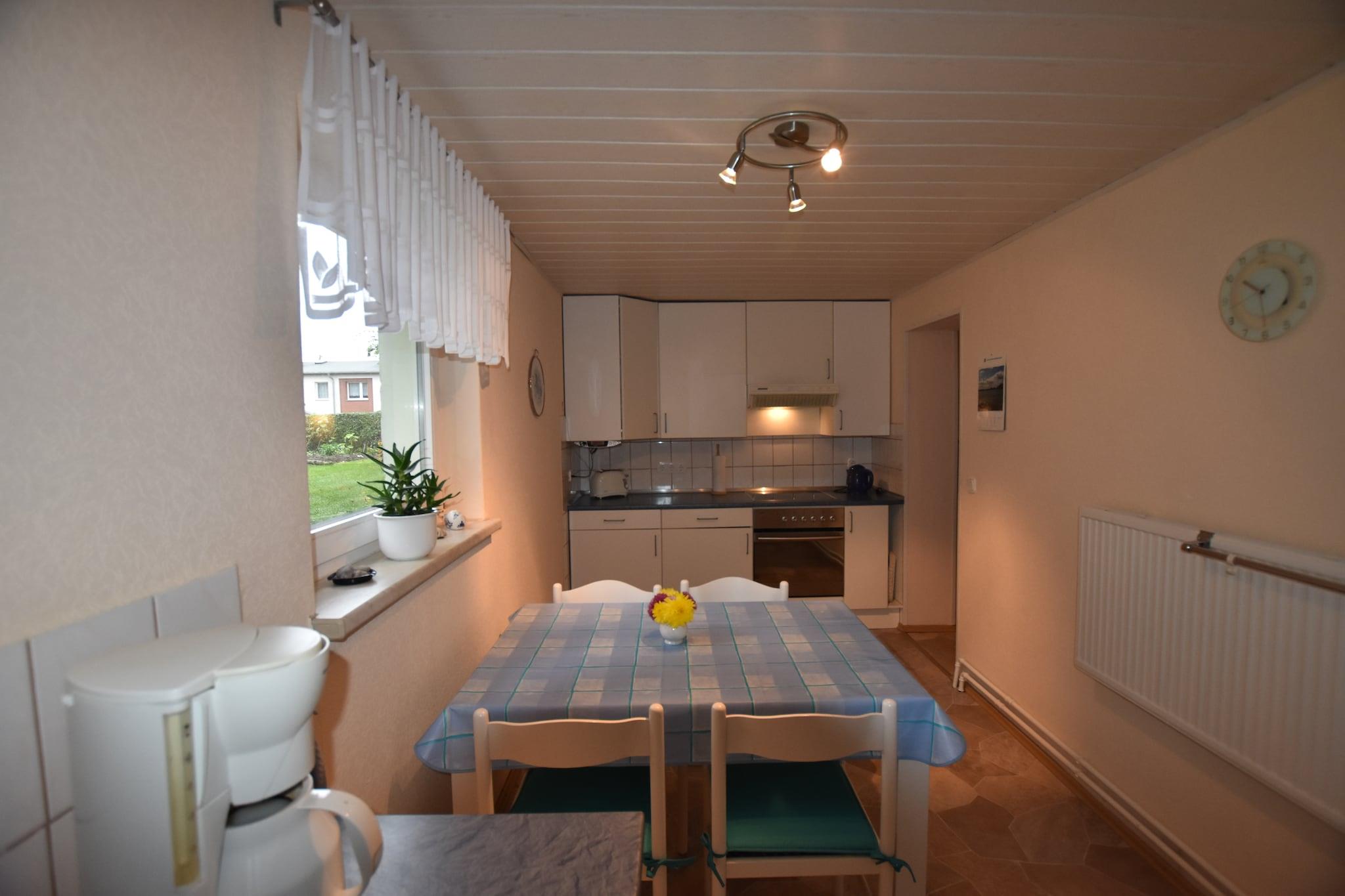 Beliggende i et fredeligt, grønt boligområde i Kröpelin, tilbyder denne hyggelige lejlighed i stueetagen et behageligt ophold for op til 4 voksne og en baby. Med egen indgang er det ideelt for familier, der søger afslapning nær Østersøen. Toværelseslejligheden har kombineret opholds- og soveværelse med kingsize-seng, separat soveværelse med to enkeltsenge, veludstyret køkken med spiseplads samt badeværelse med bruser og toilet. Centralvarme og WiFi sikrer et behageligt ophold året rundt. Træd udenfor for at nyde den overdækkede terrasse med havemøbler eller slap af i den fælles have. Der er også grill og parkering på stedet. En børneseng og høj stol er til rådighed for unge gæster. Blot få minutters gang fra et busstoppested er boligen perfekt placeret mellem Kühlungsborn (8 km) og Bad Doberan (8 km), hvilket gør det til et godt udgangspunkt for dagsture. Badebyerne og charmerende byer i nærheden lover en række fritidsmuligheder.