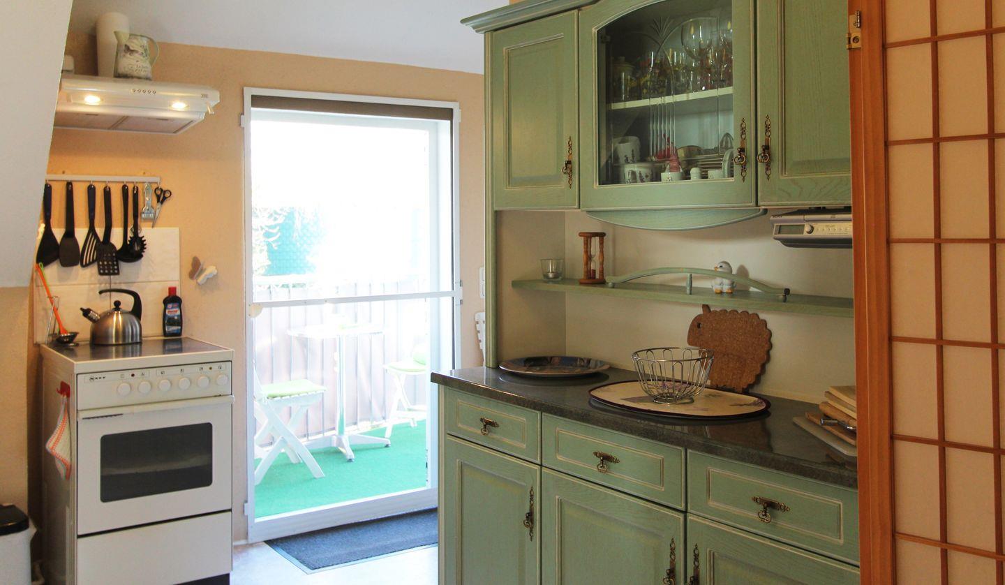 kleinem Balkon, Herd & Backofen, Kaffeemaschine, Wasserkocher, Toaster, Kühlschrank mit Gefrierfach,
