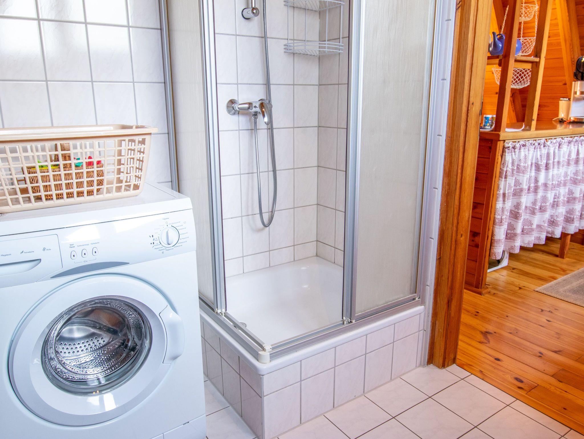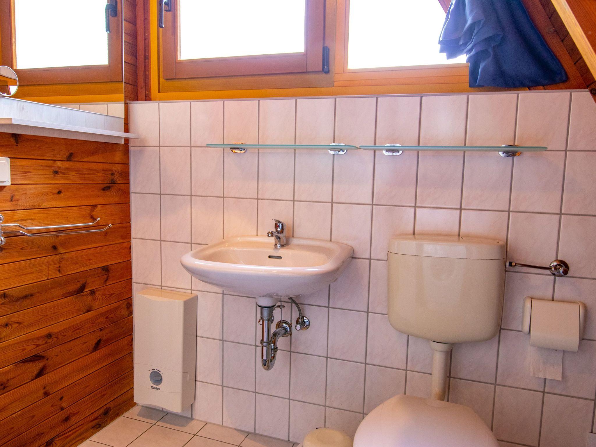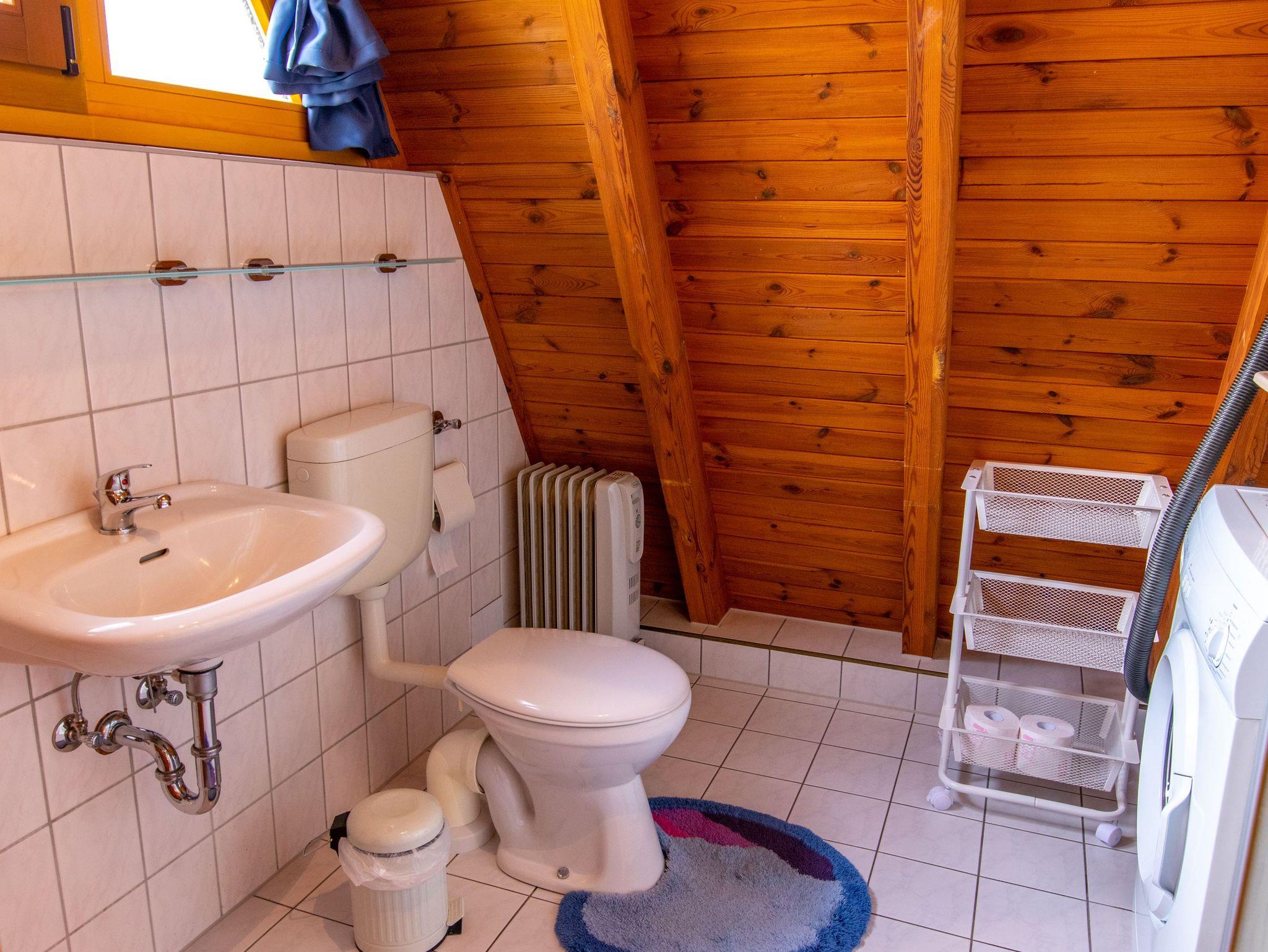 Im Erdgeschoss findest du ein geräumiges Wohnzimmer mit TV, einer gemütlichen Sitzecke und einem Esstisch. Die angrenzende offene Küche ist vollständig ausgestattet, inklusive Kühlschrank, Geschirrspüler und Kaffeemaschine. Außerdem gibt es im Erdgeschoss ein Badezimmer mit Dusche, WC und einer Waschmaschine. Über eine Raumspartreppe gelangst du ins Obergeschoss, wo sich zwei Schlafzimmer mit insgesamt 5 Einzelbetten (90x200) befinden. Jede unserer 70 m² großen Finnhütten verfügt über eine eigene Terrasse und einen Grillplatz. Zudem stehen eine Tischtennisplatte, ein Sandkasten und eine Schaukel für Kinder zur gemeinsamen Nutzung bereit.
