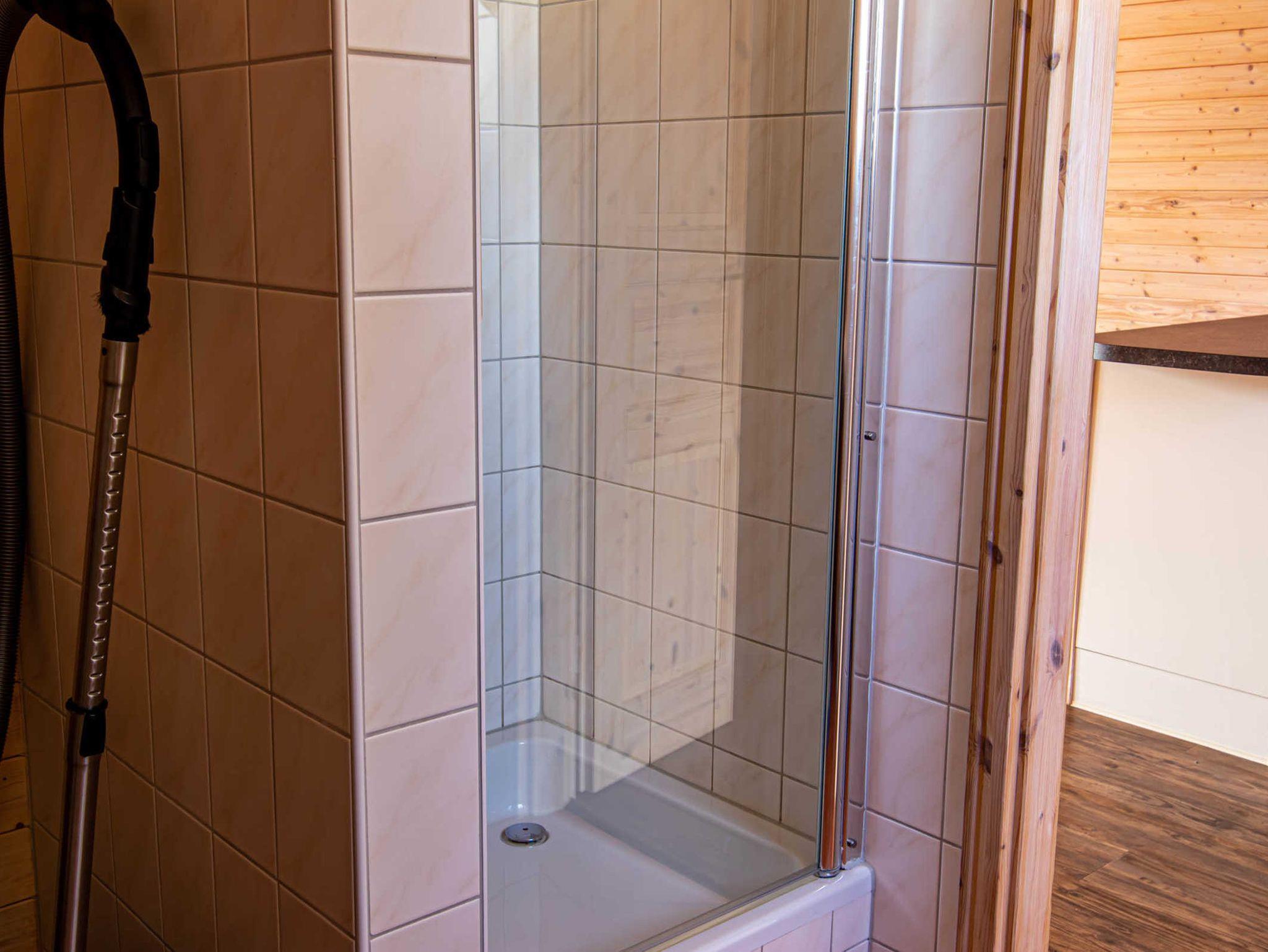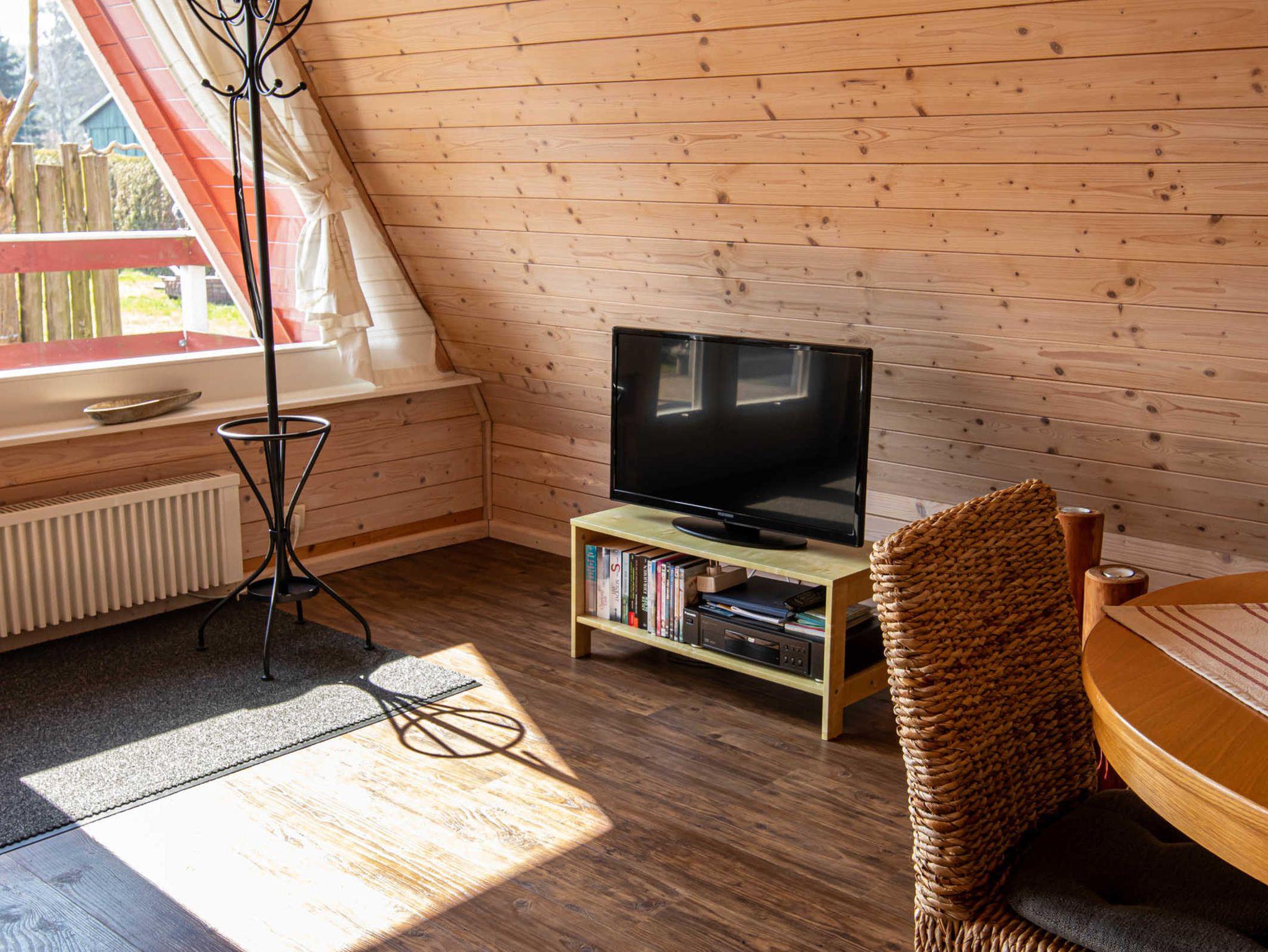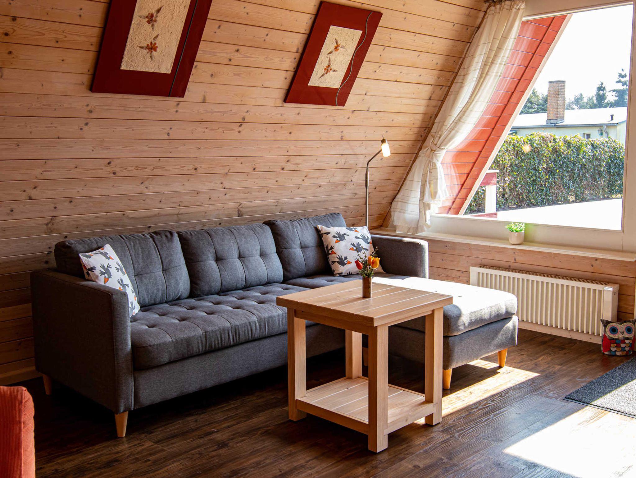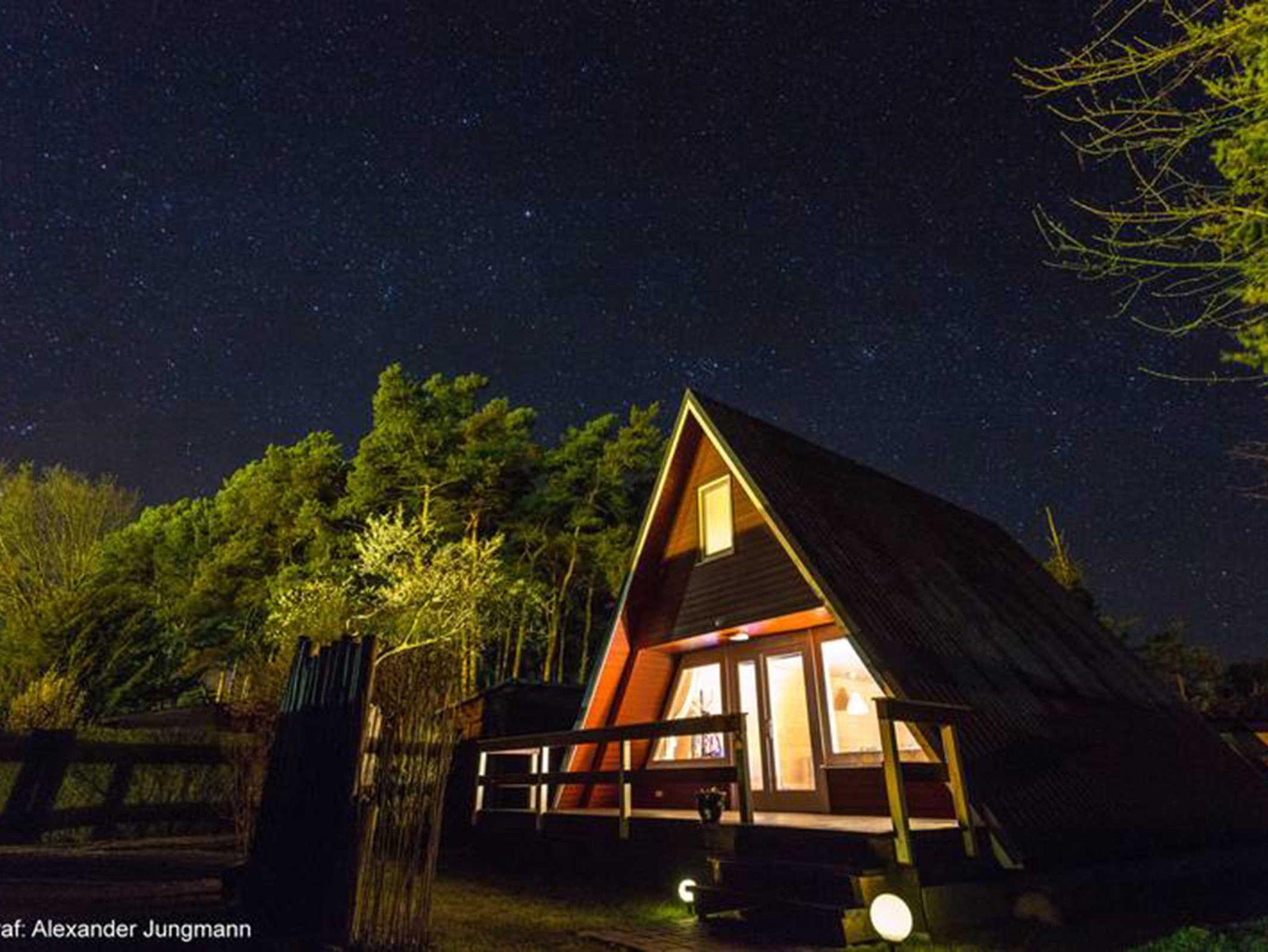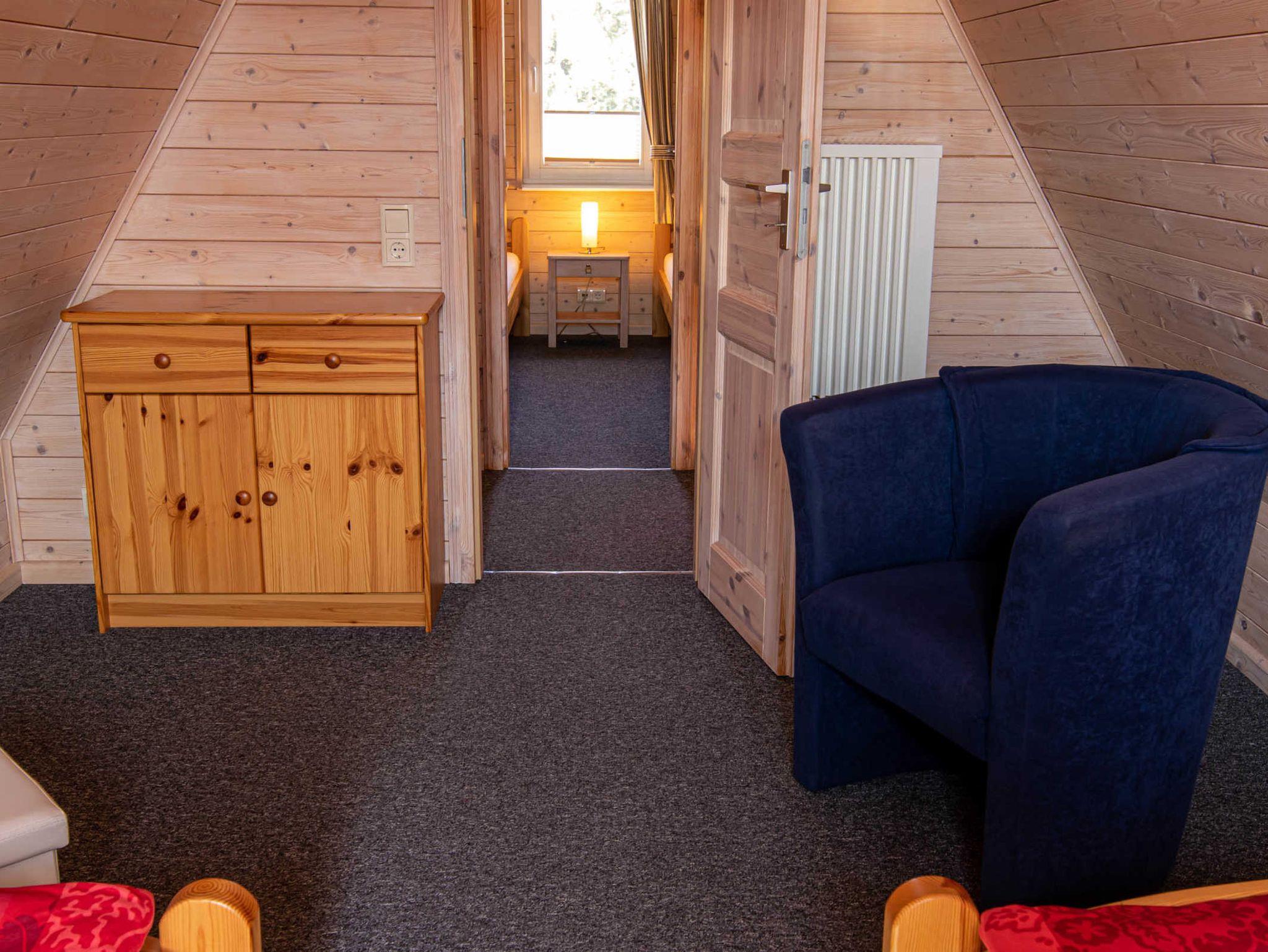 Die Finnhütte verfügt im Obergeschoss über zwei Schlafzimmer mit je zwei Einzelbetten (jeweils 90x200). Ein Kinderbett (bis 1 Jahr) kann zugestellt werden. Im unteren Bereich befinden sich ein gemütlich eingerichteter Wohnraum mit einer offenen, neuen und modernen Küche, ein Essbereich mit Esstisch und 4 Stühlen sowie das Bad mit Dusche und WC. Die Küche ist umfangreich ausgestattet mit Kühlschrank (mit 18l Frostfach), Ceran-Herd mit Backofen, Spülmaschine, Wasserkocher, Toaster und Kaffeemaschine. Internet-WLAN steht kostenfrei zur Verfügung.