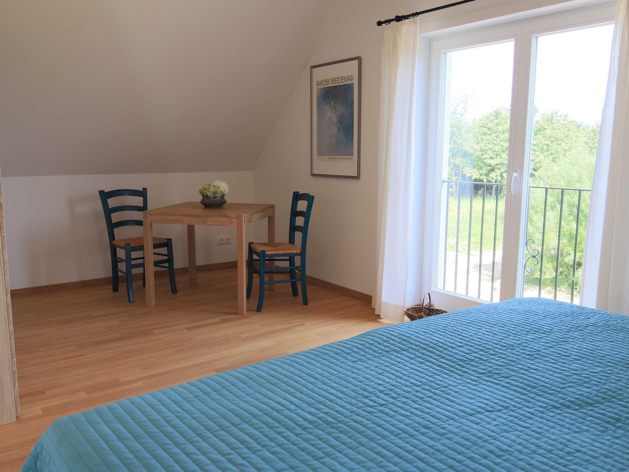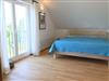 Im Obergeschoss gibt es einen großen, hellen Freizeitraum mit gemütlichem Sitzbereich, Schreibtisch und Kinder-Spielecke. Hier gibt es auch ein zweites, großes Schlafzimmer mit Doppelbett und ein weiteres Bad mit Dusche und WC. Das Haus verfügt sowohl über eine Terrrasse als auch einen Balkon mit Blick auf den Freester Hafen, Usedom, dem Greifswalder Bodden und der Insel Ruden.
