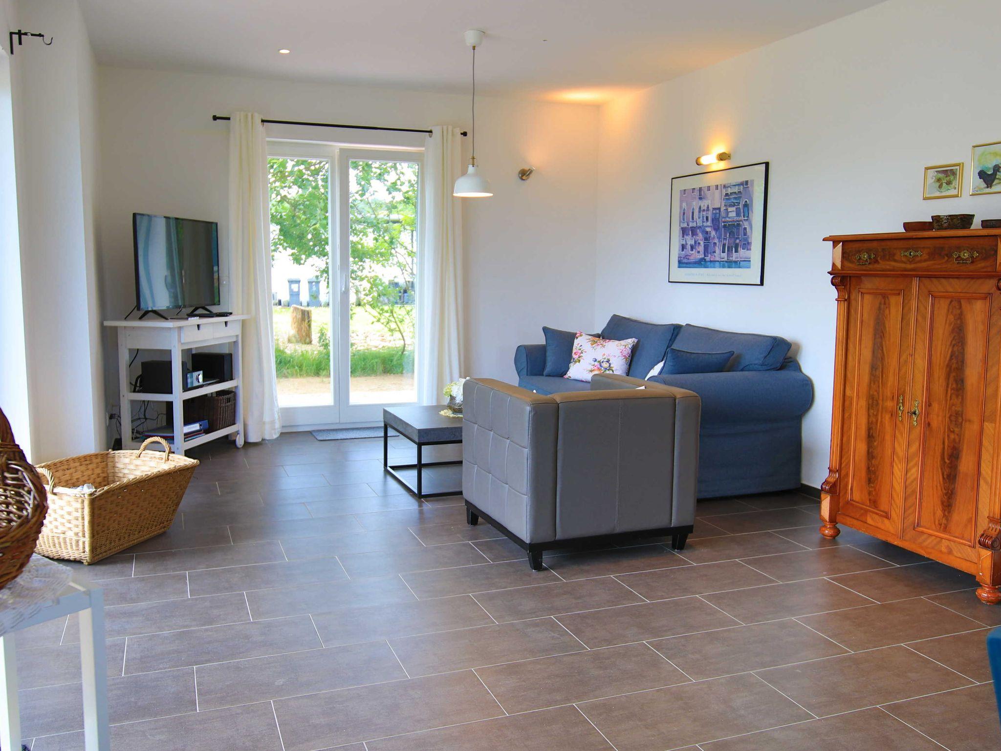 Das geräumige 124m² große Ferienhaus mit Meerblick und großem Garten liegt im idyllischen Fischerdorf Freest nah am kleinen Fischerhafen in Freest.