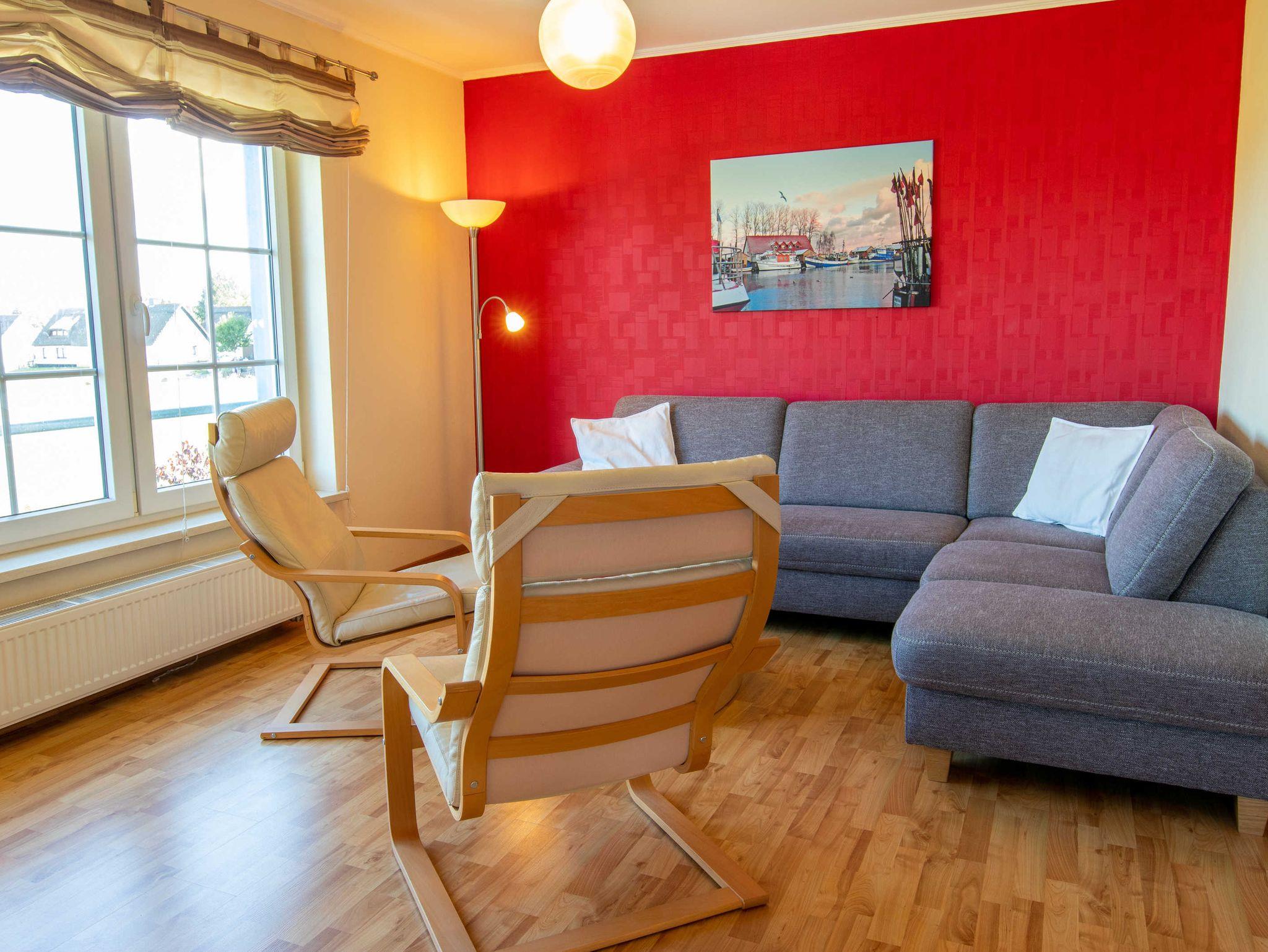 Die Ferienwohnung 1 im Blu Hus in Freest bietet auf rund 50 m² Platz für bis zu 4 Personen und befindet sich im Erdgeschoss des liebevoll gestalteten Hauses direkt am Freester Hafen. Hier wohnst du komfortabel und ganz nah am maritimen Leben, ideal für eine entspannte Auszeit an der Küste. Im Wohnzimmer findest du ein gemütliches Sofa, einen Fernseher sowie einen Esstisch, an dem ihr gemeinsam essen oder den Tag ausklingen lassen könnt. Die offene Küche ist mit Backofen, Herd, Spülmaschine und allen wichtigen Küchenhelfern ausgestattet, sodass du dich bei Bedarf auch im Urlaub problemlos selbst versorgen kannst. Vom Wohnbereich aus hast du direkten Zugang zur Terrasse, die sich bestens für ein Frühstück im Freien oder einen ruhigen Abend eignet. Die Wohnung verfügt über zwei separate Schlafzimmer. Das erste ist mit einem Doppelbett (160x200) und einem Kleiderschrank ausgestattet. Im zweiten Schlafzimmer befindet sich ein Etagenbett (90x200), ebenfalls mit Kleiderschrank, das sich besonders gut für Kinder oder getrennt schlafende Gäste eignet. Das Badezimmer verfügt über eine Dusche und ein WC. Dank der zentralen, aber ruhigen Lage am Hafen ist die Ferienwohnung der ideale Ausgangspunkt für Spaziergänge am Wasser, Ausflüge an den Strand oder entspannte Stunden im Ort. In Freest erwarten dich der kleine Strand, frischer Fisch direkt vom Kutter, ein traditionelles Fischerfest im August und das besondere Flair eines echten Küstendorfes.