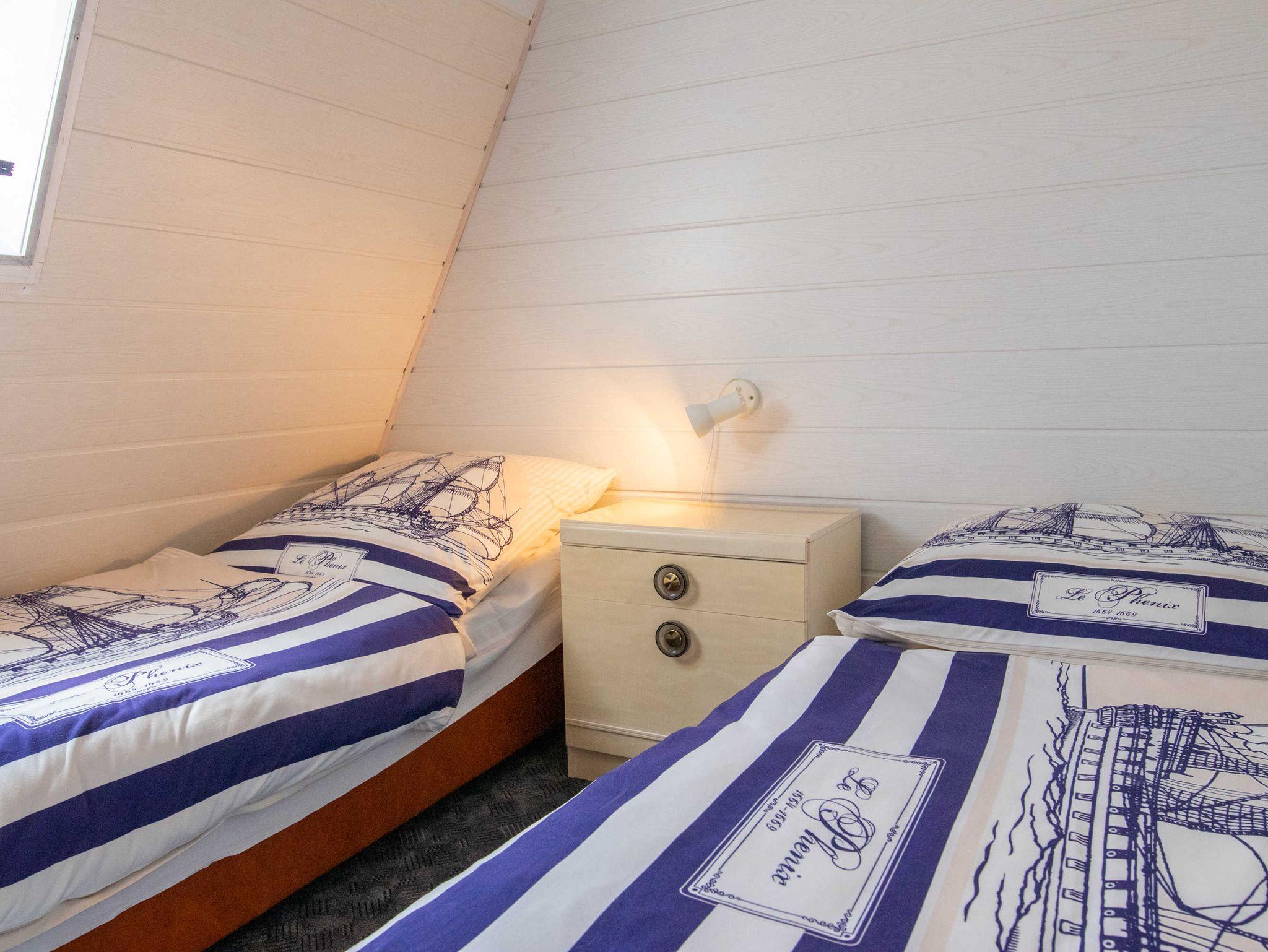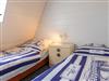 Im Obergeschoss befinden sich zwei Schlafzimmer, eines mit Blick zum Wasser, Doppelbett (180x200 cm) und Sitzgelegenheit, das andere Zimmer ist mit zwei Einzelbetten ausgestattet.