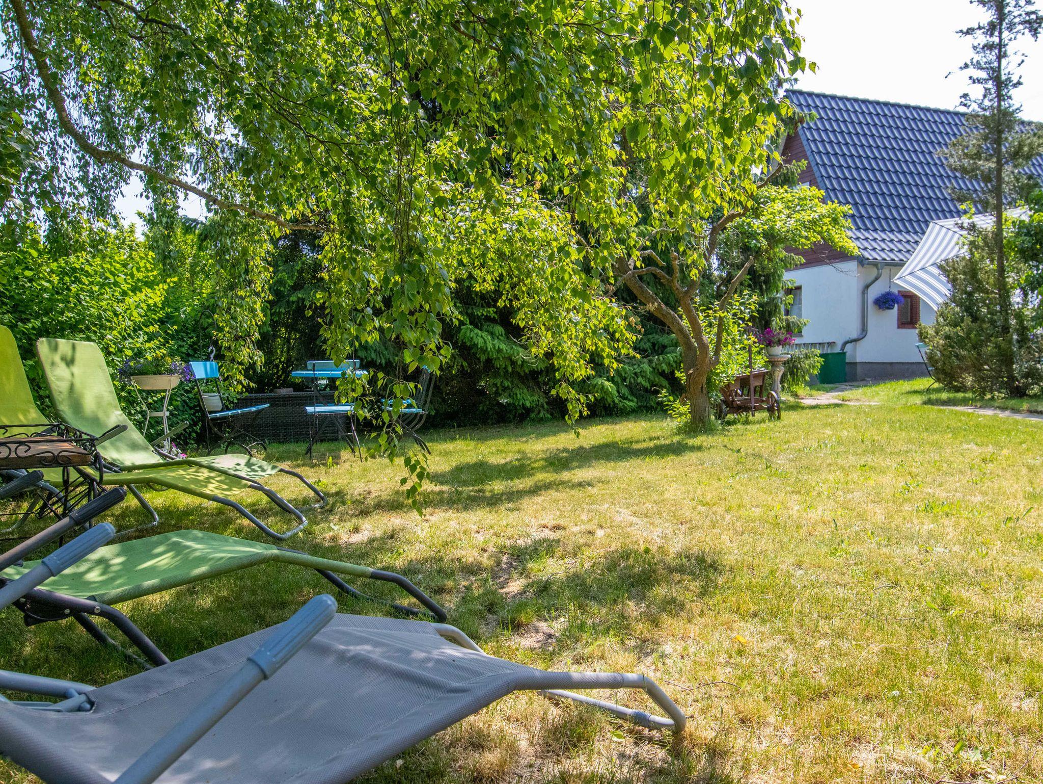Im Garten stehen zwei separate Sitzecken mit Grillmöglichkeit zur Verfügung. Sonnenliegen auf einer kleinen Wiese laden zur Entspannung ein.