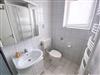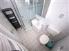 Das Badezimmer ist modern gestaltet und verfügt über Dusche und WC.