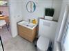 Das moderne Badezimmer verfügt über Dusche, Waschbecken, WC sowie einen 80-Liter-Boiler für warmes Wasser.