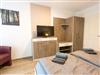 Die beiden Schlafzimmer sind mit Doppelbett (180x200; getrennte Matratzen, einzeln stellbar), Smart-TV, Kleiderschrank und Sessel ausgestattet. Die Fenster sind mit elektrischen Außenjalousien verdunkelbar und mit Insektenschutz versehen.