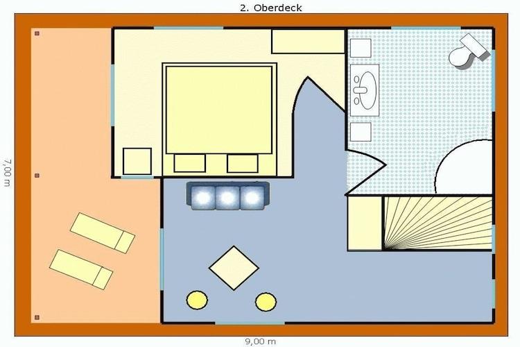 Stueetage: (åbent køkken(kogeplade(Komfur med fire kogeplader, glaskeramisk), elkedel, brødrister, emhætte, kaffemaskine, ovn, mikrobølgeovn, opvaskemaskine , køleskab), stue / spisestue(Fjernsyn(fladskærm, parabol), spisebord, sofahjørne, radio, CD-afspiller), toilet(håndvask, toilet)) På 1. etage: (soveværelse(dobbeltseng), svalegang soveværelse(dobbeltseng), badeværelse(bruser, håndvask, toilet, føntørrer)) tørretumbler(deles med andre gæster, betalt), sauna(deles med andre gæster, betalt), vaskemaskine(deles med andre gæster, betalt), balkon, varme, terrasse(overdækket), havemøbler, solstole, Håndklæder/sengelinned (inkl.),