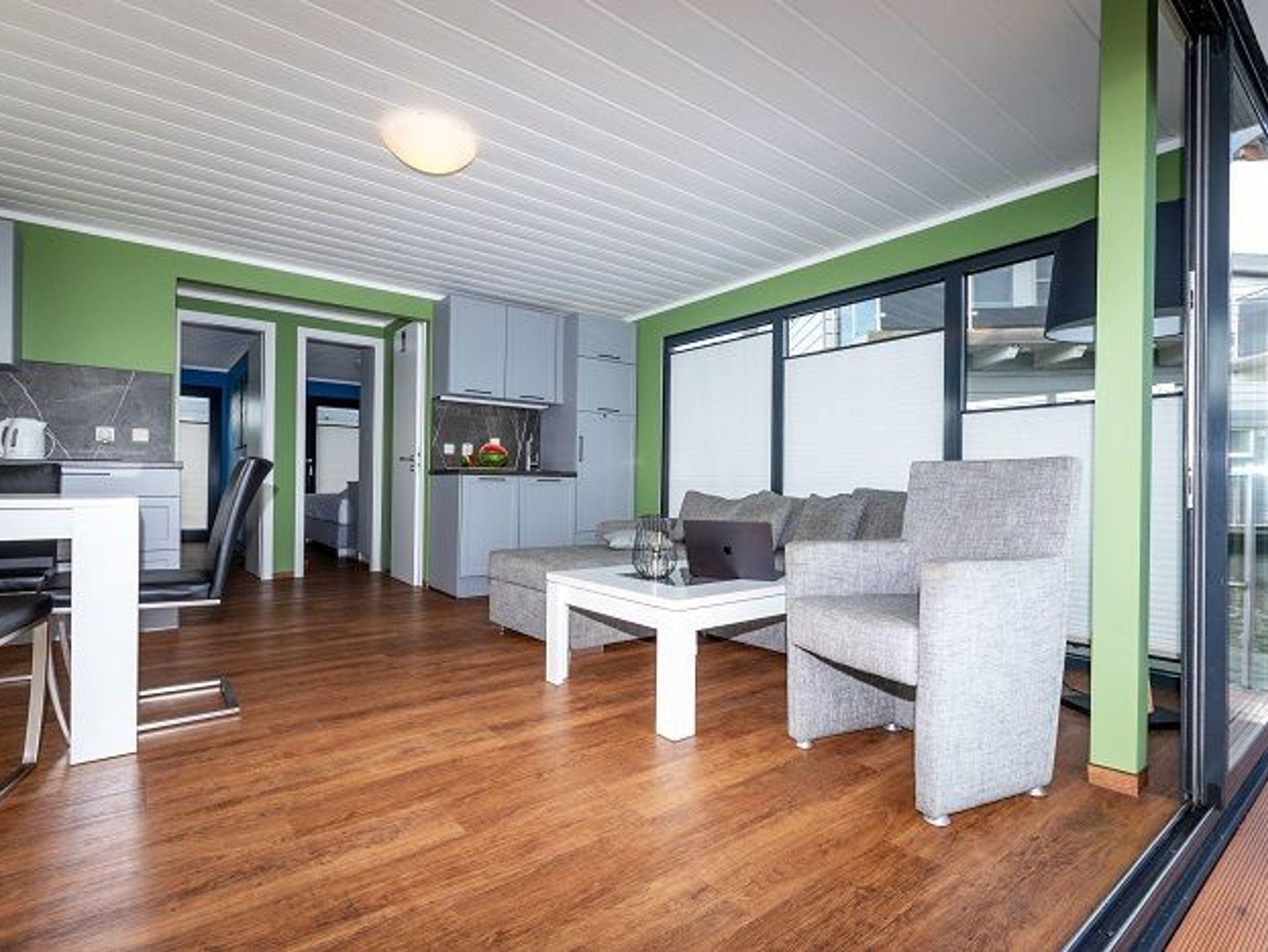 Das Seemobil bietet alles, was einen Aufenthalt in diesem Haus angenehm und so einmalig macht: viel Glas und die optimale Aufteilung der beiden Schlafzimmer und der Wohnebene mit großzügiger Terrasse.
