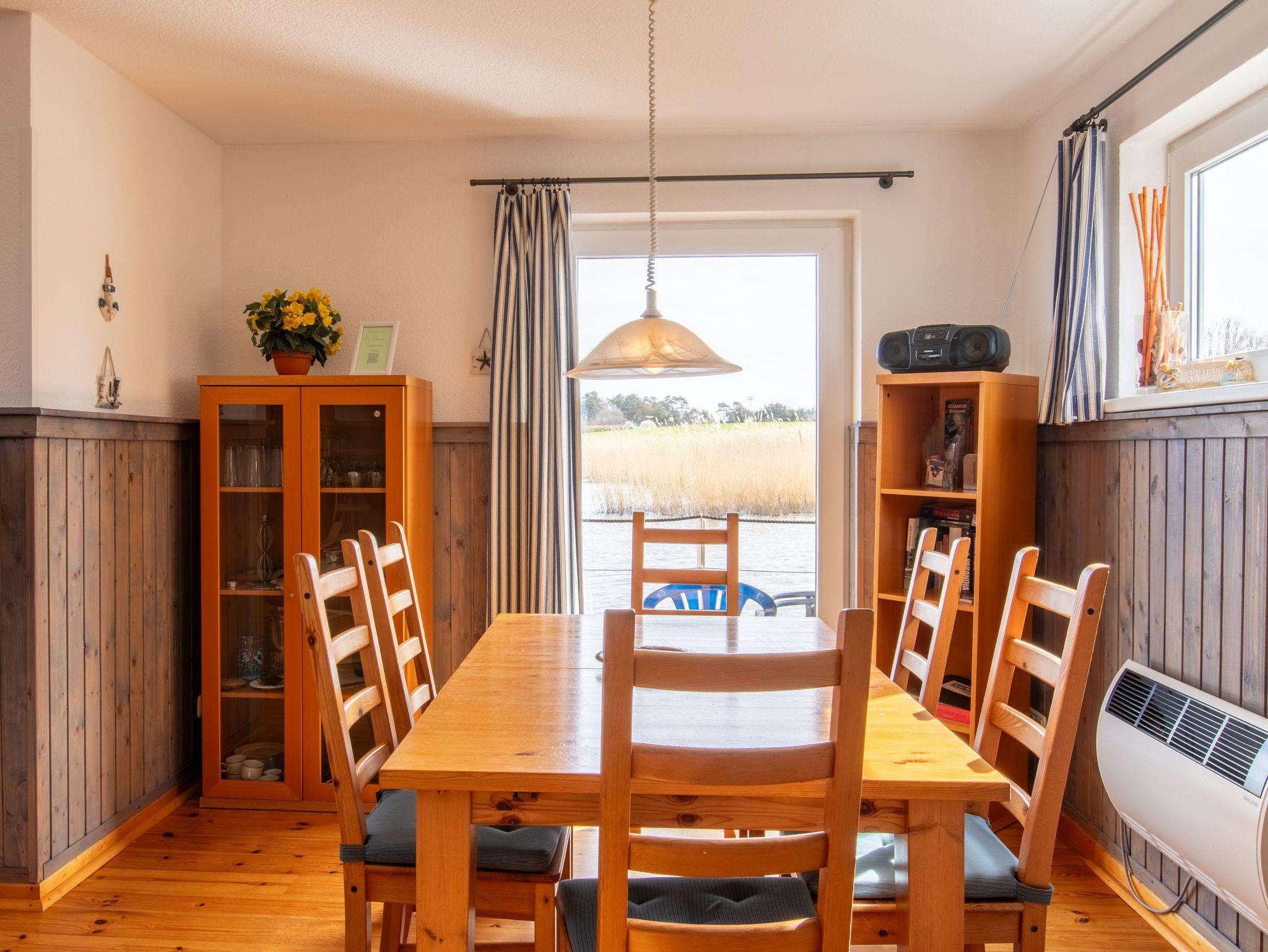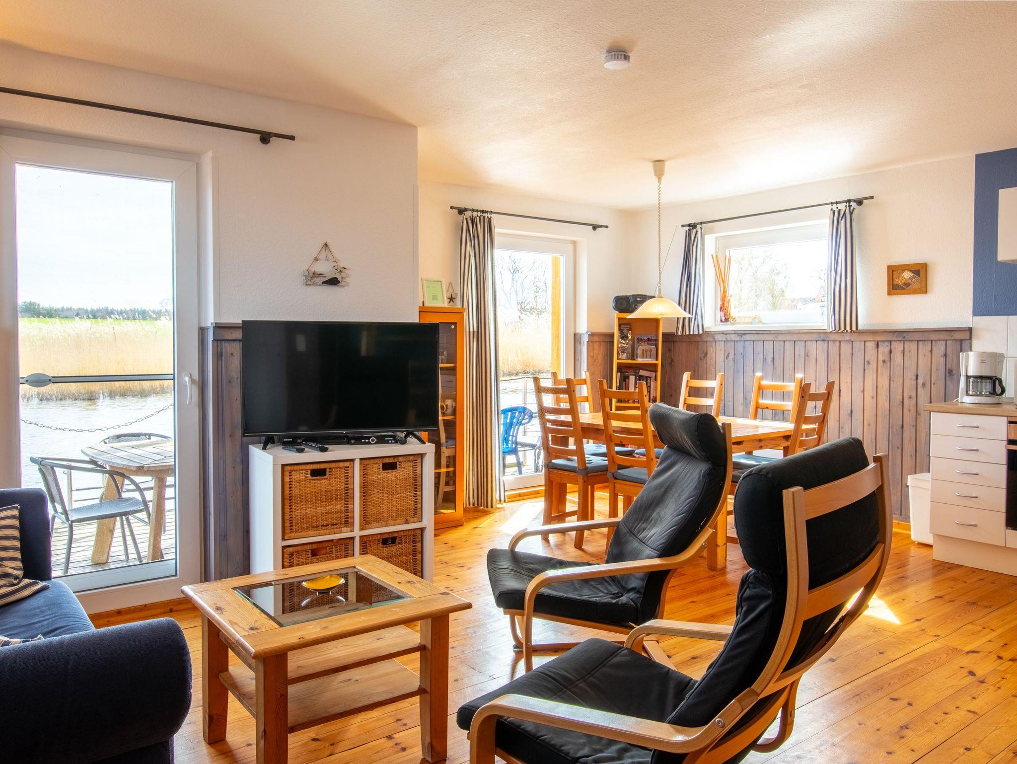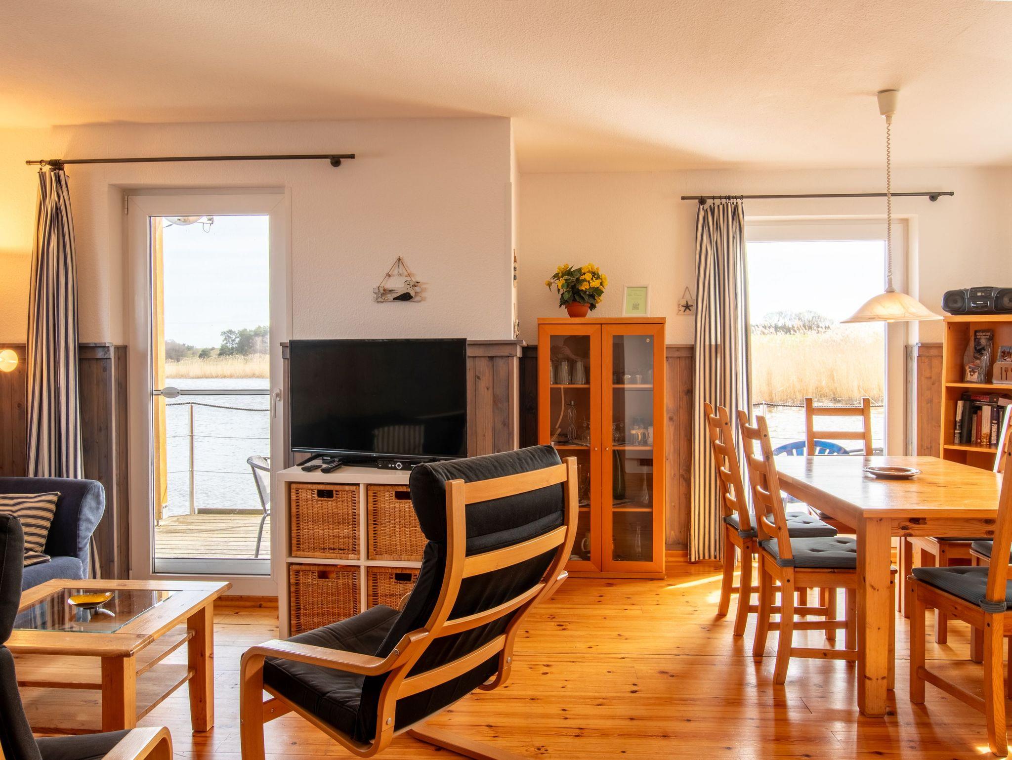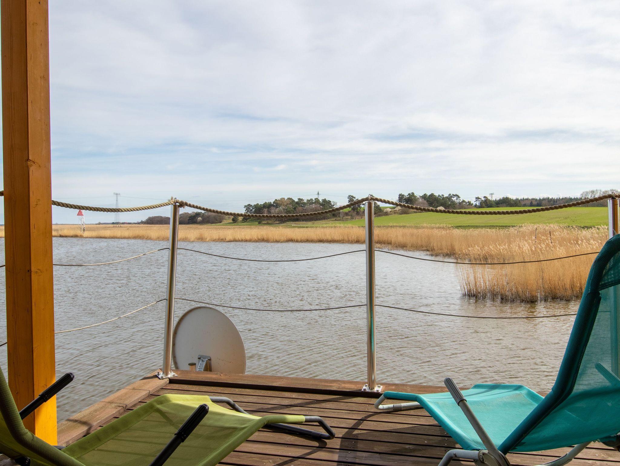 Floating House 1 in Kröslin bietet dir auf zwei Etagen und rund 75m² Wohnfläche dein schwimmendes Zuhause direkt im Hafen ? mit Platz für bis zu 6 Personen und ein gut erzogenes Haustier, das natürlich gern mit in den Urlaub kommen darf. Hier genießt du den Sonnenaufgang auf der Terrasse, den Blick über das Wasser vom Balkon und ein ganz besonderes Lebensgefühl zwischen Natur und maritimer Leichtigkeit. Der offene Wohnbereich im Erdgeschoss ist großzügig gestaltet: eine bequeme Sofaecke mit Schwing-Sessel, ein großer Esstisch und viel Tageslicht durch die umlaufenden Fenster schaffen eine entspannte, helle Atmosphäre. Die integrierte Küche ist bestens ausgestattet ? mit Ceranfeld, Backofen mit Grill, Mikrowelle, Geschirrspüler, Kühlschrank, Kaffeemaschine, Toaster, Wasserkocher und allem, was du für deinen Urlaub brauchst. Im Obergeschoss findest du zwei gemütliche Schlafzimmer mit je einem Doppelbett (180x200), sowie ein weiteres Zimmer mit einem Schlafsofa (140x200), das sich auch wunderbar als Lese- oder Rückzugszimmer nutzen lässt. Zwei der Zimmer haben direkten Zugang zum Balkon mit Relaxliegen und Blick über den Bodden. Das moderne Bad verfügt über Dusche, WC, Spiegelschrank, Fön und Kosmetikspiegel. Für Unterhaltung sorgen Sat-TV, CD-Radio und natürlich WLAN ? bereitgestellt über das Netz der Marina. Klimatisiert wird über moderne Elektro-Heizungen in allen Räumen. Draußen warten zwei ganz besondere Lieblingsplätze: die Terrasse direkt am Wasser, ausgestattet mit Gartenmöbeln und der Balkon mit Sonnenliegen für entspannte Stunden über dem Hafen. Wenn du ein offenes Sportboot bis 4,5 m Länge mitbringst, kannst du direkt am Haus anlegen. Ein kostenfreier Parkplatz steht dir ebenfalls zur Verfügung.
