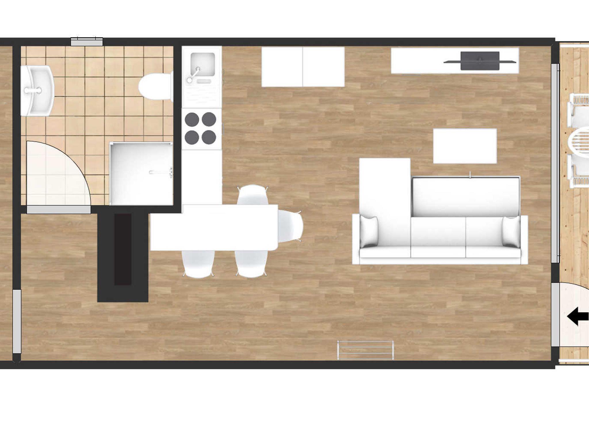 Die Küche ist mit Geschirr, Ceran-Herd, Abzugshaube, Spülmaschine, Wasserkocher, Toaster, Kaffeemaschine und Kühlschrank mit Gefrierfach vollständig ausgestattet. Der Tisch für die Küche ist ein rustikaler Tresen mit vier Hochstühlen, zwei davon für Kinder. Im Zentrum des Wohnzimmers befindet sich eine gemütliche Couch, die bei Bedarf als Schlafcouch (160x200) umfunktioniert werden kann. Von dieser hat der Besucher durch eine große Fensterfront einen Ausblick ins Grüne. Flachbild TV, Dolby-Surround Anlage, Radio und Internet-WLAN gehören ebenso ins Wohnzimmer. Das Bad ist vom Flur aus über eine kleine Stufe erreichbar. Im Bad (mit Fenster) gibt es eine ebenerdige Klarglas-Dusche, ein WC und ein Waschbecken. Fön und Handtücher sind vorhanden. Für das warme Wasser und die Heizung ist die Sonne zuständig die bei uns ja bekanntlich bis zu 1300 Stunden im Jahr scheint. Zur Wohnung gehören auch ein ca. 80m² großer uriger Garten auf dem Grundstück des Vermieters mit Grill und Gartenmöbel sowie separaten PKW Stellplatz.