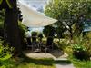 Im sonnigen Garten befindet sich eine Sitz- und Grillmöglichkeit direkt am großen Gartenteich.