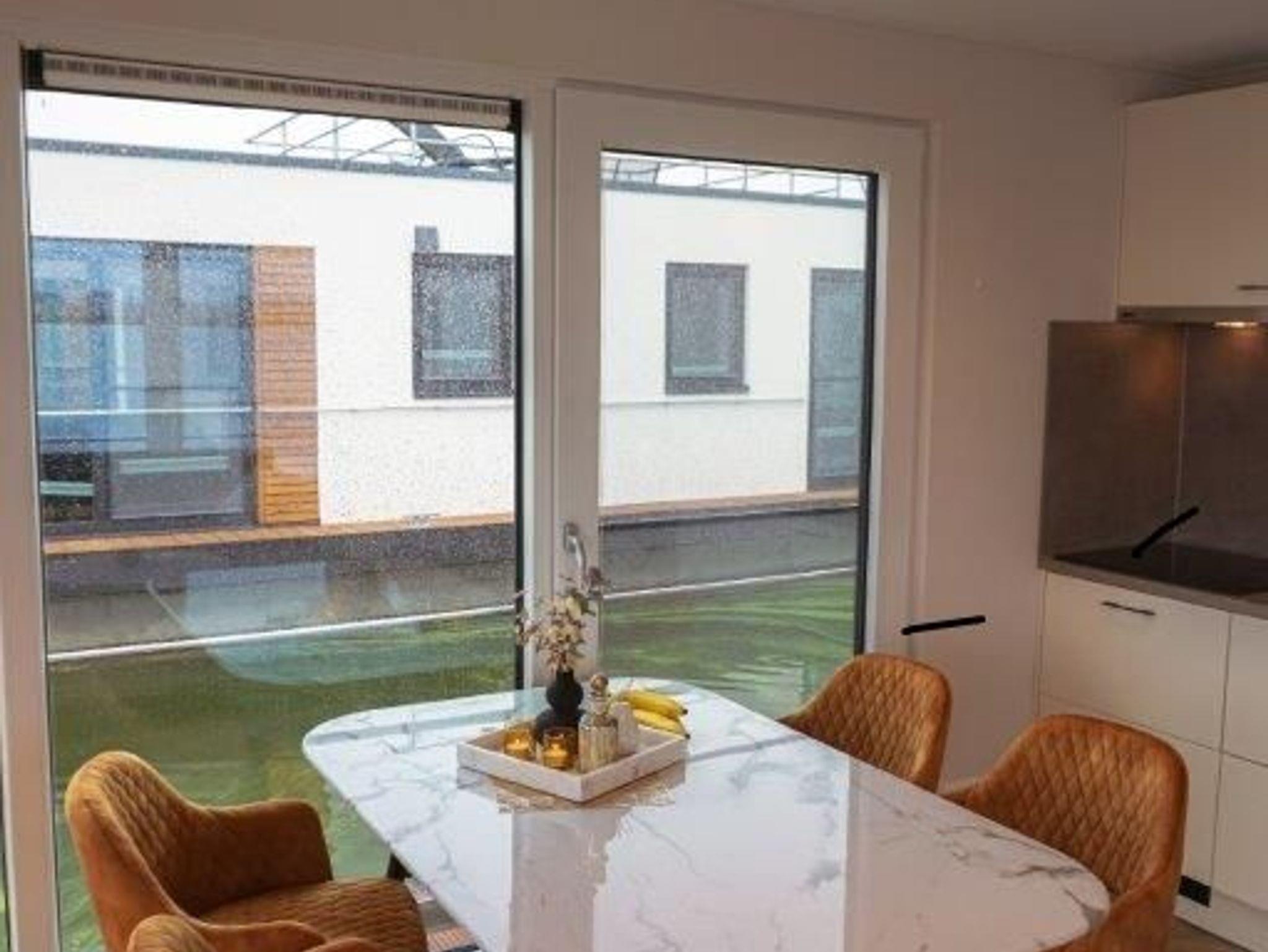 Auf einer Grundfläche von insgesamt etwa 45 m² befinden sich der Wohnraum mit offener Wohnküche, die Terrasse und weitere Lauffläche im Außenbereich des Hausbootes, 2 Schlafzimmer, ein Bad mit Dusche und ein WC mit Waschtisch. Auf der oberen Etage befindet sich die zusätzliche Sonnenterrasse mit Sonnenliege und Loungemöbel. In der Küche finden Sie Kühlschrank mit Gefrierfach, Spülmaschine, Mikrowelle, Kaffeemaschine. Im Wohnzimmer sorgt der Fernseher für Unterhaltung.