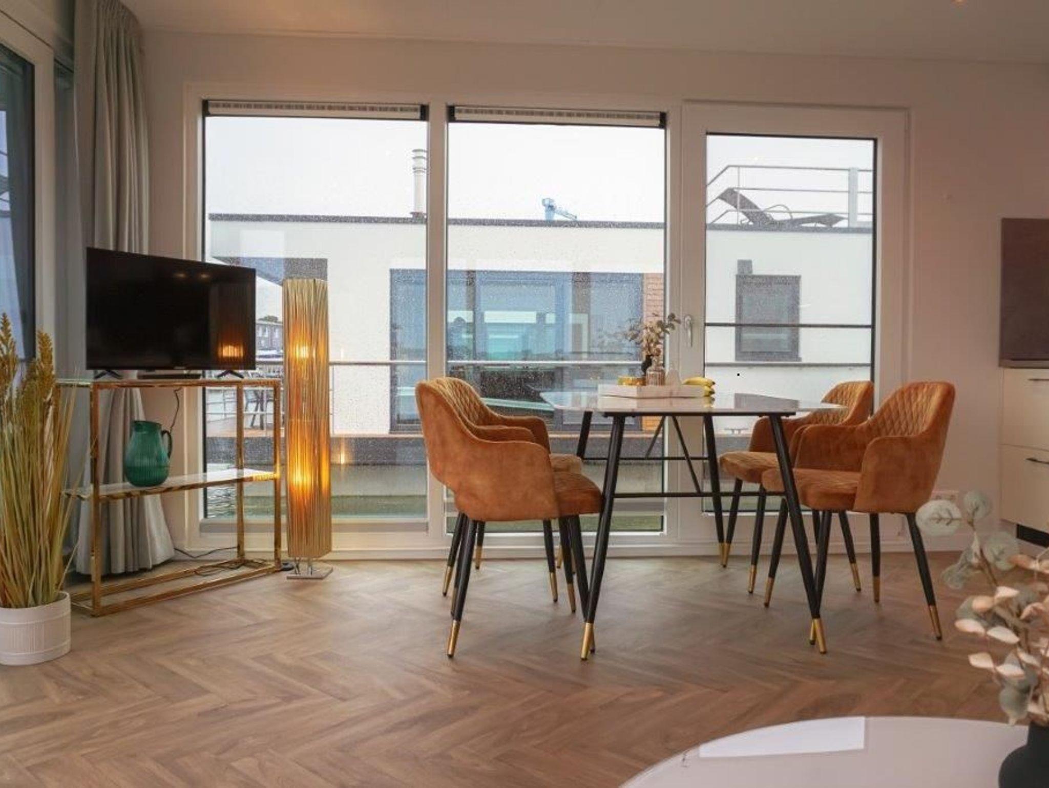 Das Seemobil bietet alles, was einen Aufenthalt in diesem Haus angenehm und so einmalig macht: einen Kamin, viel Glas und die optimale Aufteilung der beiden Schlafzimmer und der Wohnebene mit großzügiger Terrasse (Bug und Oberdeck).