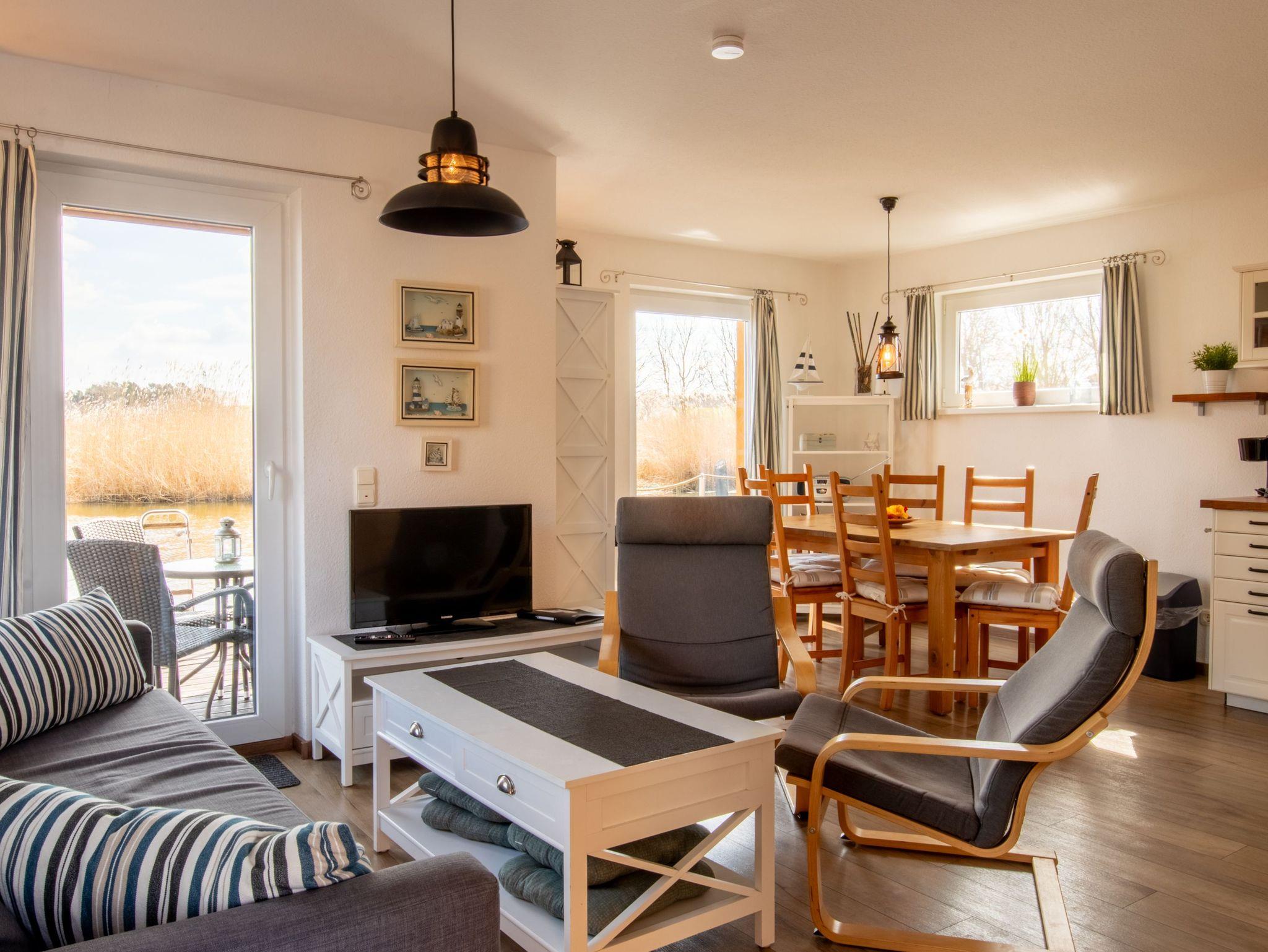 Floating Houses Kröslin ? das ist Urlaub mitten im Hafenleben, mit direktem Blick aufs Wasser, auf Segelboote und in die Natur. In der geschützten Lage am Rande der Marina erwarten dich fünf großzügige Hausboote mit 75m² Wohnfläche auf zwei Etagen ? eine perfekte Kombination aus maritimem Flair und modernem Ferienkomfort. Je nach Haus finden hier 4 bis 6 Personen Platz, verteilt auf 2 bis 3 Schlafzimmer ? ideal für Paare, Familien oder Freundesgruppen. In allen Häusern außer Haus 3 ist dein Hund herzlich willkommen. Die schwimmenden Ferienhäuser liegen fest verankert im Yachthafen von Kröslin ? mit Blick auf das Wasser, das angrenzende Naturschutzgebiet und von der oberen Etage sogar bis zu den Inseln Usedom und Rügen. Ob du vom Balkon aus das Hafentreiben beobachtest, auf der Terrasse die Sonne genießt oder einfach in der gemütlichen Sofaecke die Seele baumeln lässt ? hier spürst du in jeder Ecke: Du bist angekommen. Die Floating Houses verbinden das Gefühl von Freiheit auf dem Wasser mit dem Komfort eines echten Ferienhauses. WLAN ist im Hafen verfügbar, ein kostenfreier Parkplatz gehört ebenso zur Ausstattung wie ein gemütlicher Wohnbereich, eine moderne Küche, ein Bad und natürlich viel Licht und Luft durch große Fensterflächen. Und auch drumherum gibt?s viel zu entdecken: Die Marina Kröslin bietet dir saisonal zahlreiche Freizeitangebote ? von Fahrradverleih über Sauna bis hin zum Bootsverleih und Kinderspielplatz. Wenn du ein kleines Trailerboot mitbringen möchtest: Kein Problem ? Boote bis 4,50m Länge kannst du direkt am Hausboot anlegen. Ganz gleich, ob du aktiv sein möchtest oder einfach nur den Sonnenuntergang auf dem Balkon genießen willst ? in Kröslin findest du Urlaub auf dem Wasser, wie er sein sollte: entspannt, besonders und unvergesslich.