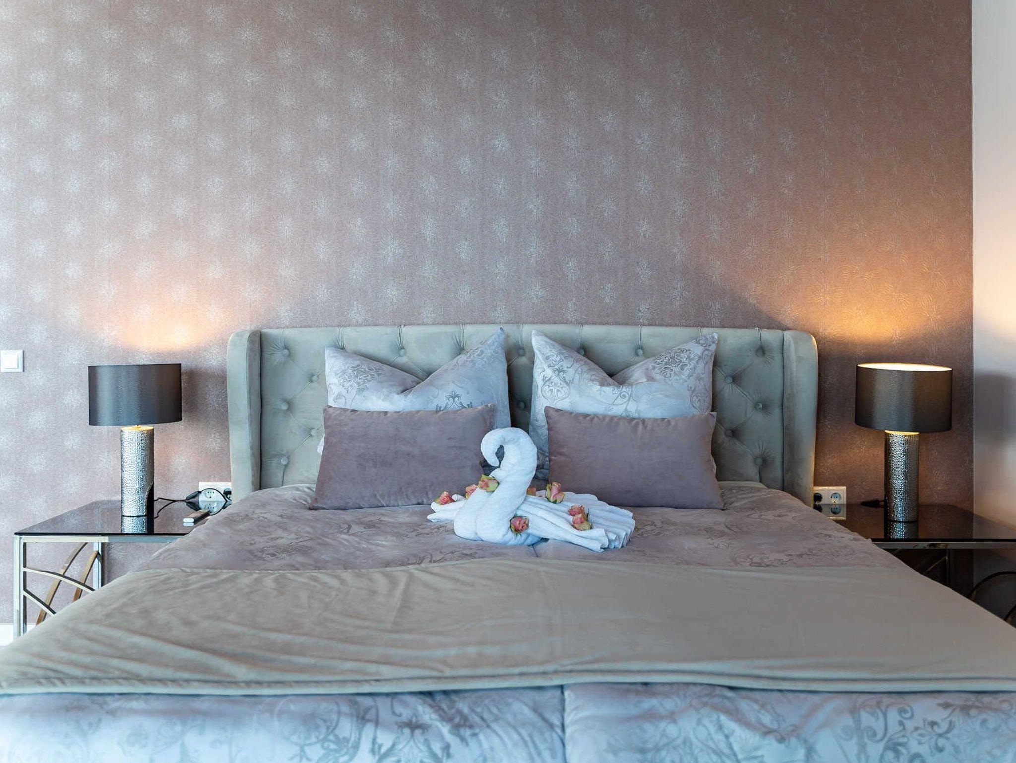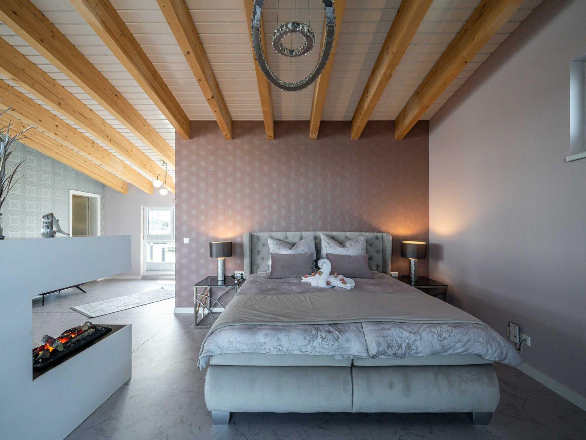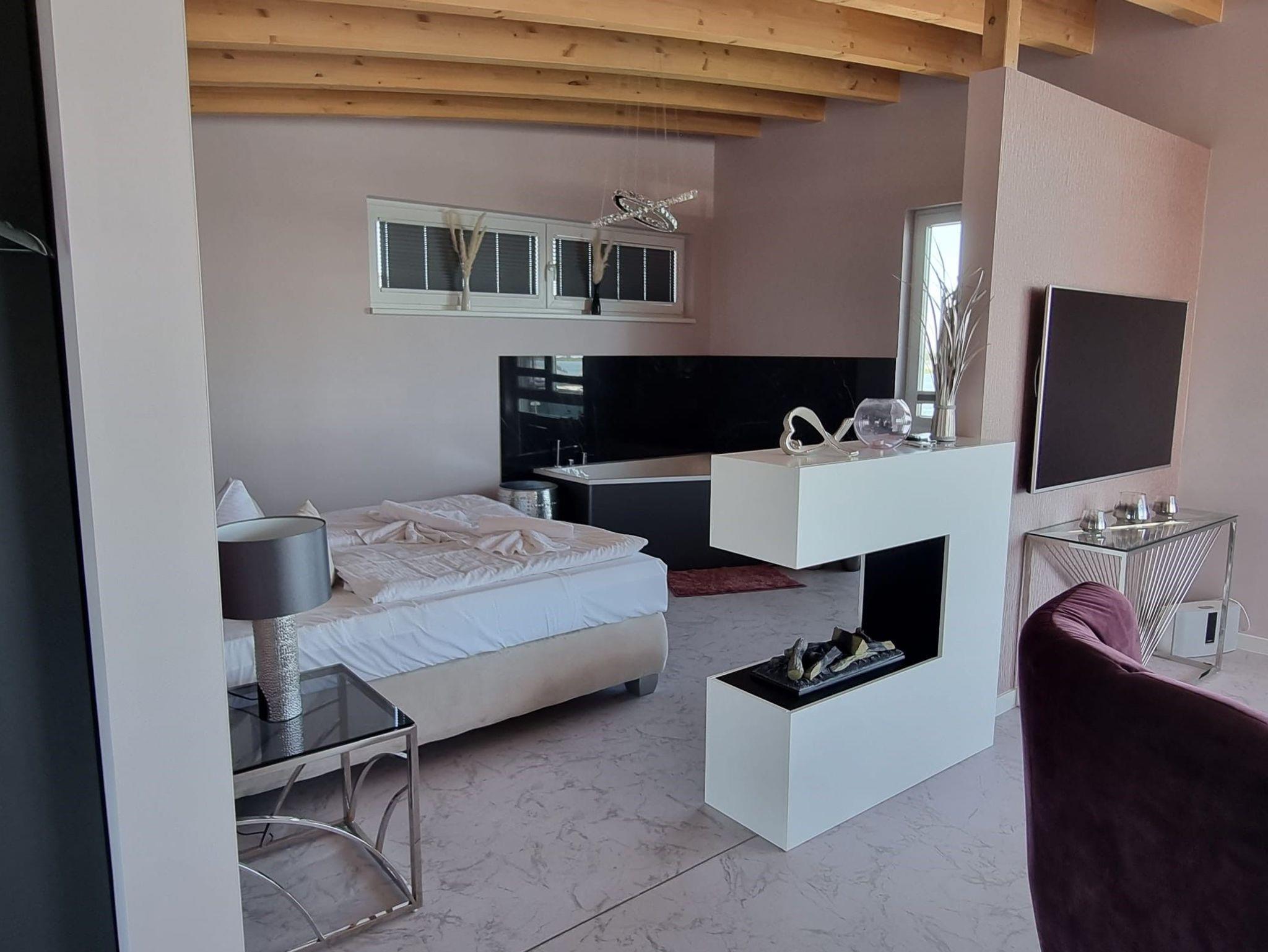 - Schlafzimmer mit Boxspringbett und TV