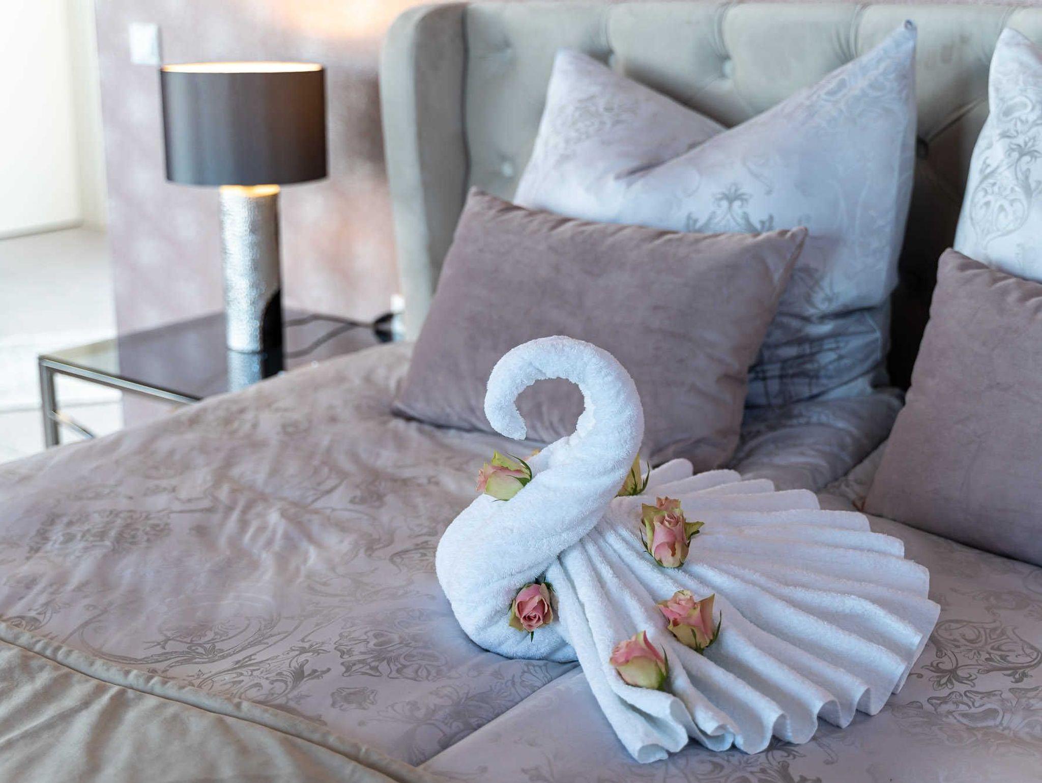 Lassen Sie die Seele baumeln und verbringen Sie die Zeit in Zweisamkeit in unserer traumhaften Honeymoon-Suite im Obergeschoss des schwimmenden Standesamtes mit Blick auf den Krösliner See.