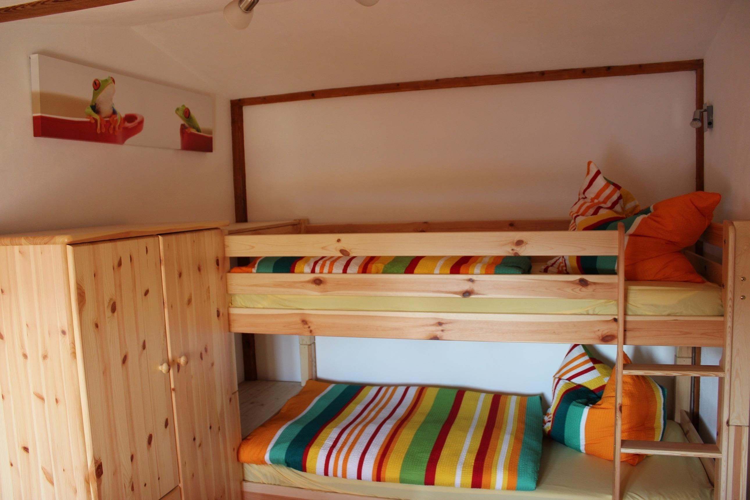 Das ruhig gelegene Appartement mit einem separatem Schlafzimmer liegt über der Kunstgalerie des jetzigen Kanuhofes. Es hat einen separaten Eingang. Im großzügigen sonnigen Wohnbereich von 43 m² befinden sich neben gemütlicher Fernseh- und Leseecke auch die gut ausgestattete Küchenzeile mit Esstisch sowie ein Doppelbett, das mit einem Vorhang abgetrennt werden kann. Das Schlafzimmer ist mit einem Etagenbett ausgestattet. Ein modernes Bad mit WC und Dusche sind selbstverständlich vorhanden. Die Räume sind mit Holzmöbeln im skandinavischen Stil eingerichtet. Auf dem weitläufigen Hof laden Sitzgelegenheiten zum Entspannen ein. Die rustikale Sitzecke im Gartens bietet auch die Möglichkeit, einen Grill zu nutzen.