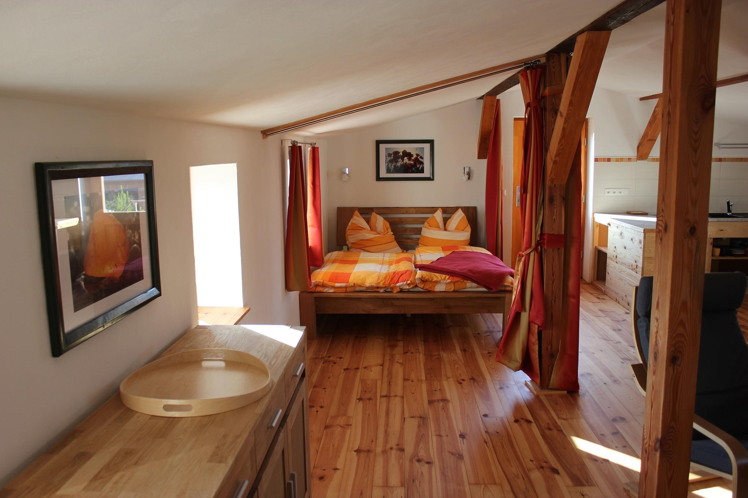 Die Ferienwohnung "Galerie" befindet sich im sanierten Nebengebäude unseres Hofes. Es stammt von 1889 und diente als Heuboden. Wir haben die Wohnung 2015 /16 liebevoll zu einer gemütlichen Ferienwohnung für zwei bis vier Gäste ausgebaut. Nur ein kurzer Spaziergang und schon haben Sie den Blick über die Ostsee oder sind im Wald.