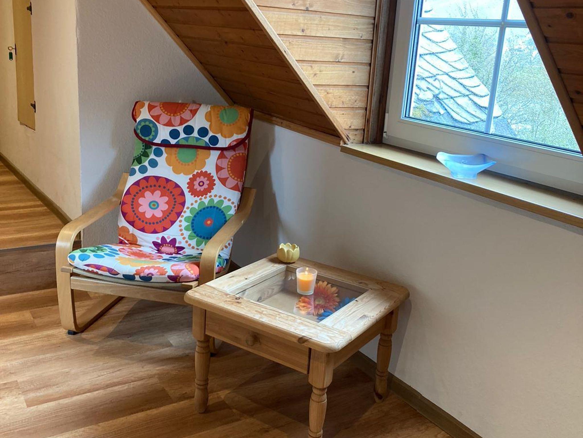 Die Ferienwohnung befindet sich im Dachgeschoss unseres Gästehauses. Erst im November 2021 wurde die Ferienwohnung renoviert und liebevoll mit Holzmöbeln ausgestattet. Vom Pariser Balkon habt ihr einen Fernblick in die Weinberge und den Hunsrück. Auf dem Balkon in der 1. Etage könnt ihr beim Sonnenuntergang den Blick auf die Mosel und Enkirch genießen.