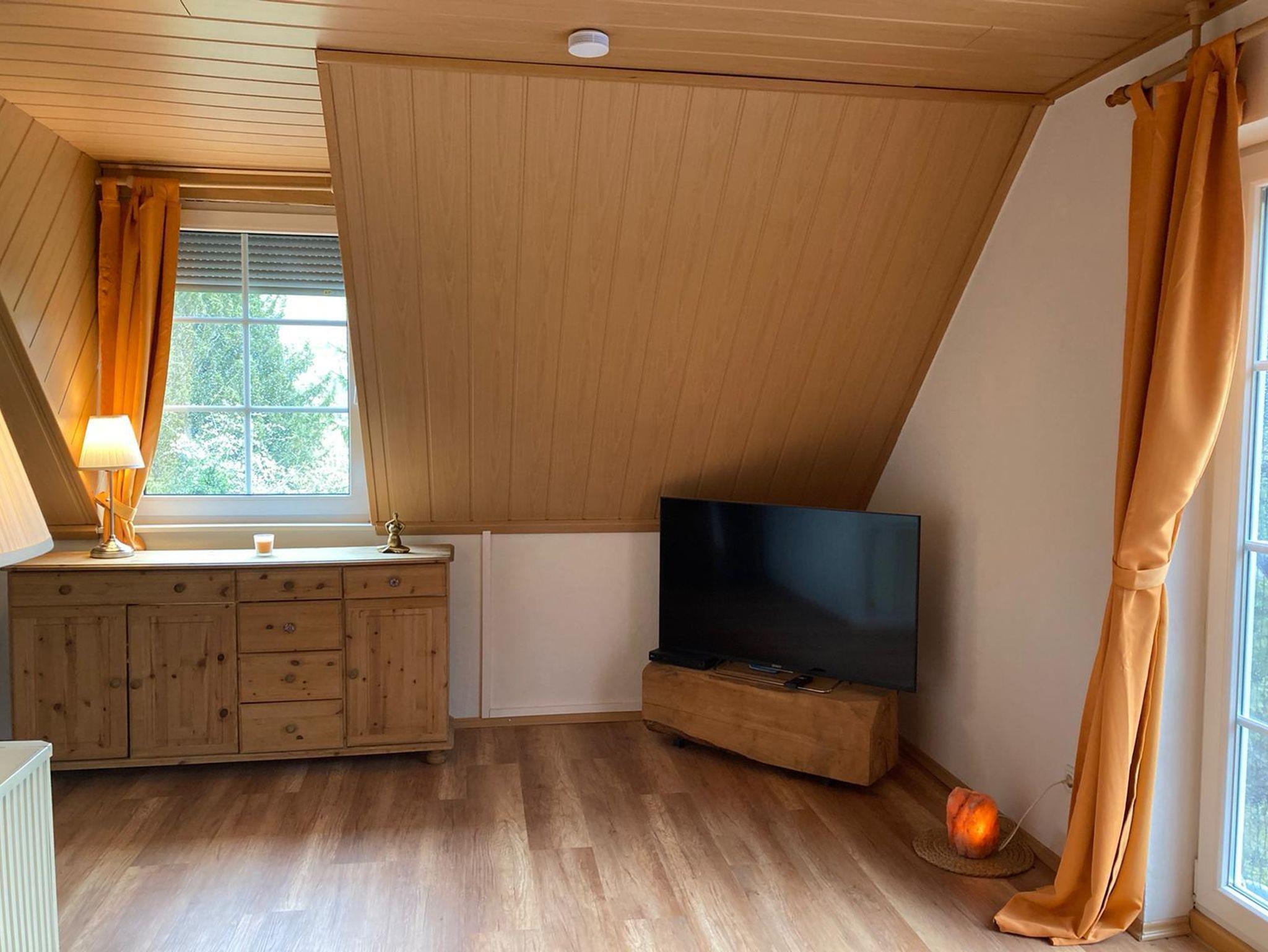 Zwei Schlafzimmer, jeweils mit Dusche und Waschbecken ausgestattet, sorgen dafür, dass jeder seinen ruhigen Schlaf finden kann. Eine separate Toilette ist im Flur der Ferienwohnung. Das geräumige Wohnzimmer bietet mit einer bequemen Sitzgruppe ausreichend Platz für bis zu vier Personen. Natürlich gehören ein Flat-TV (Waipu-TV und Netflix), ein DVD-Player und eine Bose-Anlage (Radio und CD) zur Ausstattung.