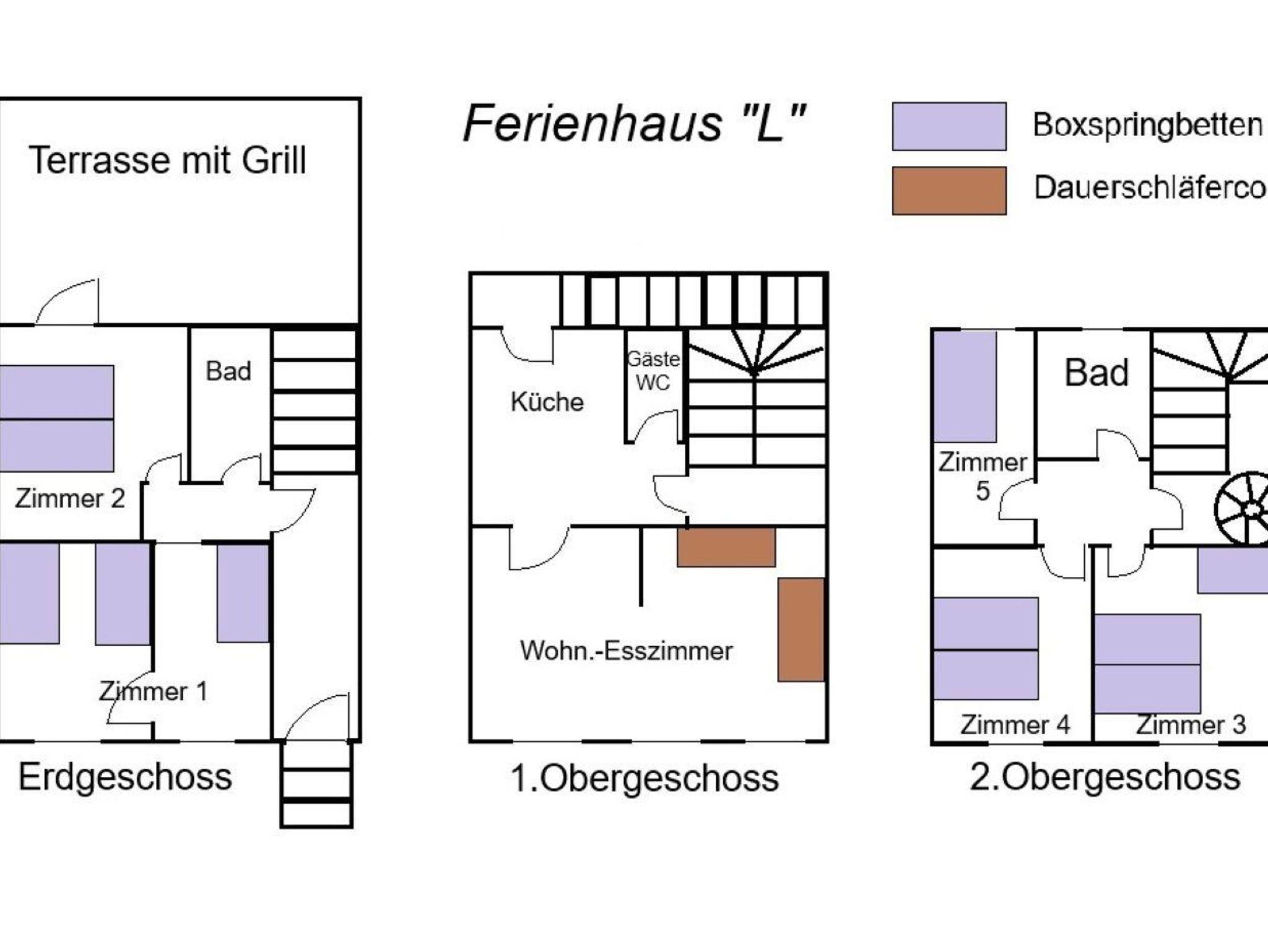 • Alle fünf Schlafzimmer sind mit Boxspringbetten ausgestattet.
