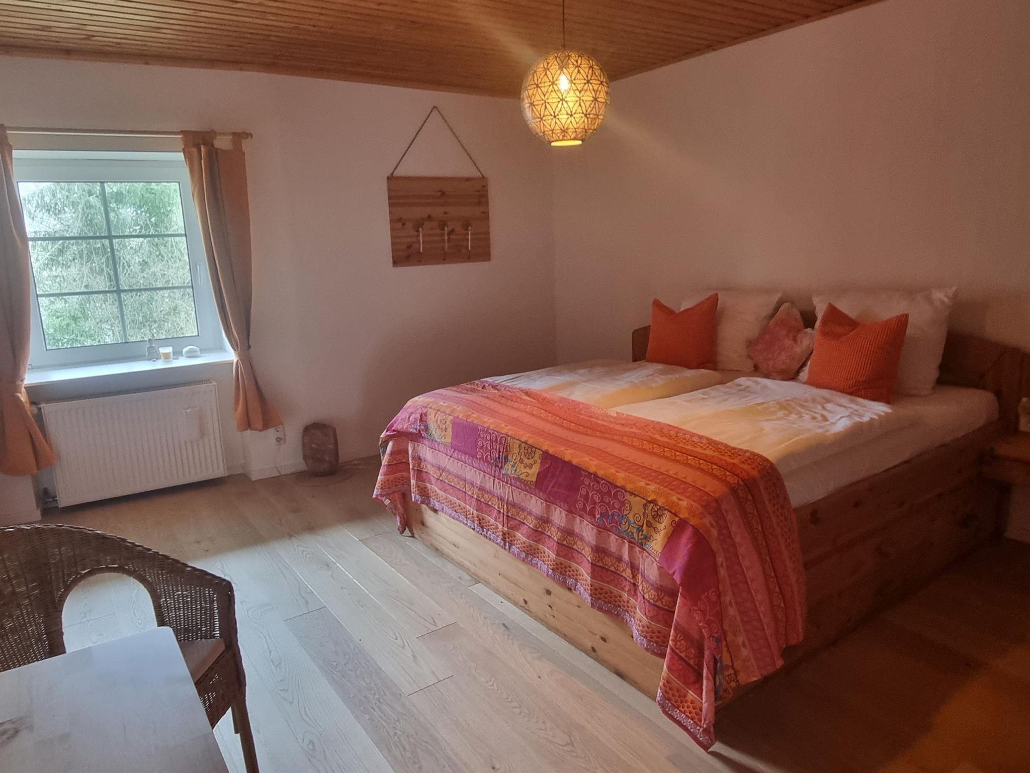 Ein schöner Holzschrank im Zimmer bietet ausreichend Platz für Garderobe und Wäsche. Auf den neuen Matratzen im Doppelbett wirst du einen erholsamen Schlaf finden. Um diese Ruhe zu gewährleisten, haben wir ganz bewusst auf einen TV im Zimmer verzichtet. Auf Wunsch stellen wir aber gerne ein TV mit Waipu-TV und Netflix zur Verfügung.