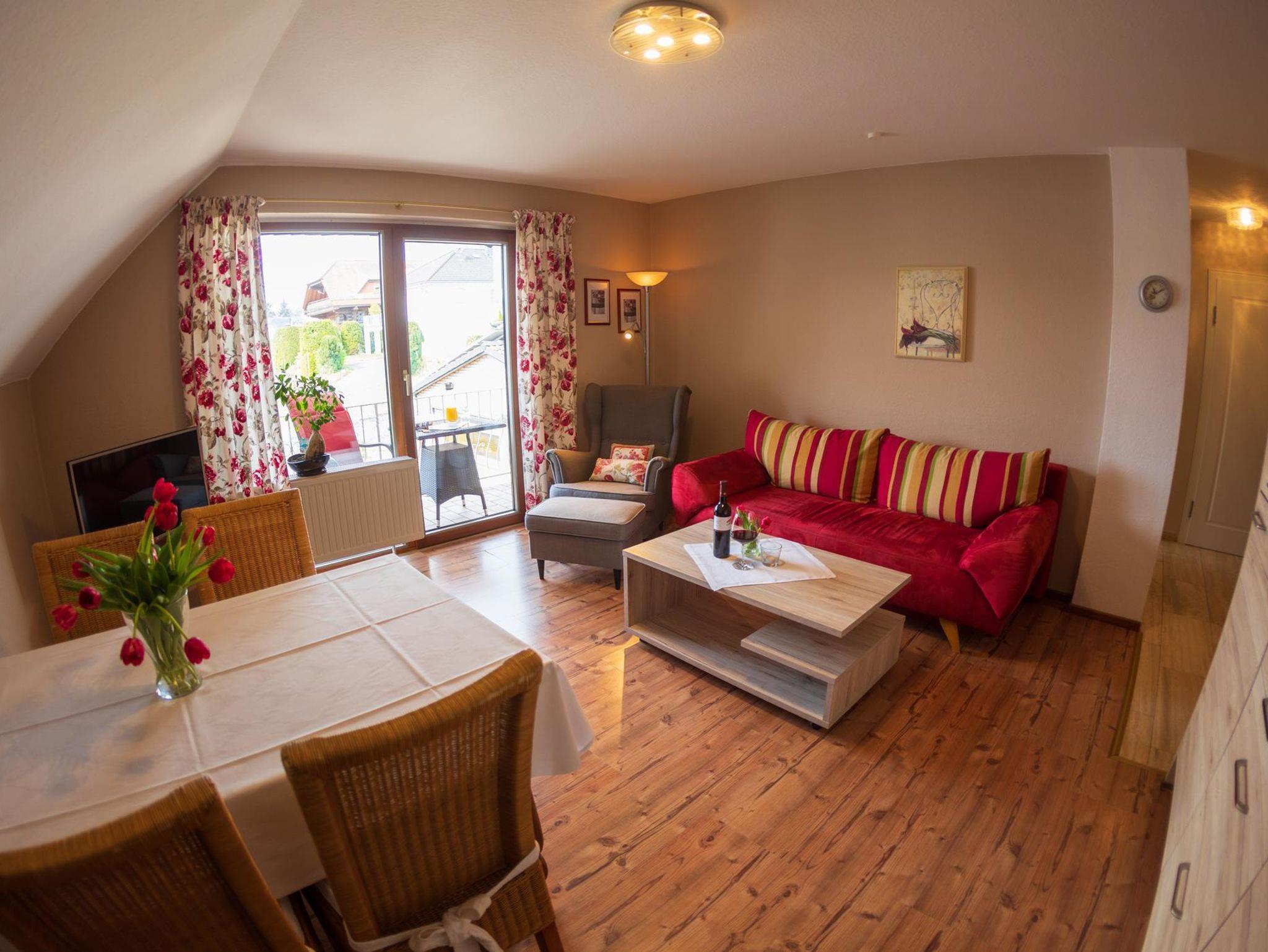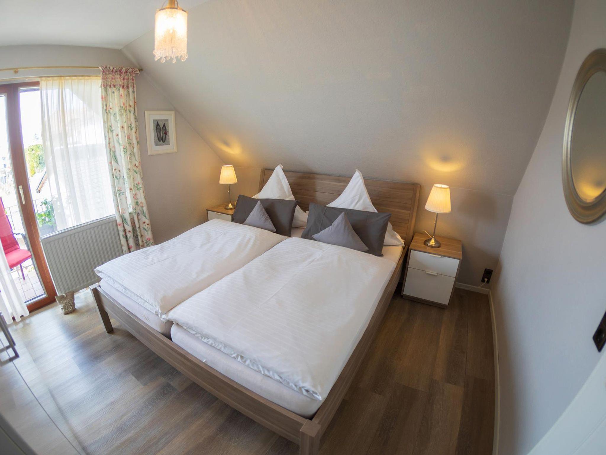 50qm große lichtdurchflutete Ferienwohnung für 2-4 Personen Neue Anbauküche mit Spülmachine, Backofen,Mikrowelle und **** Kühlschrank. 1 Doppleschlafzimmer,Wohnschlafraum für 3+4. Person. SAT-TV. Balkon nach Süd/Westseite. Dusche / WC, Föhn und Kosmetikspiegel. WLAN kostenlos. Abschließbare Fahrradgarage, Parkplatz, 2 Aufladestationen für E-Autos