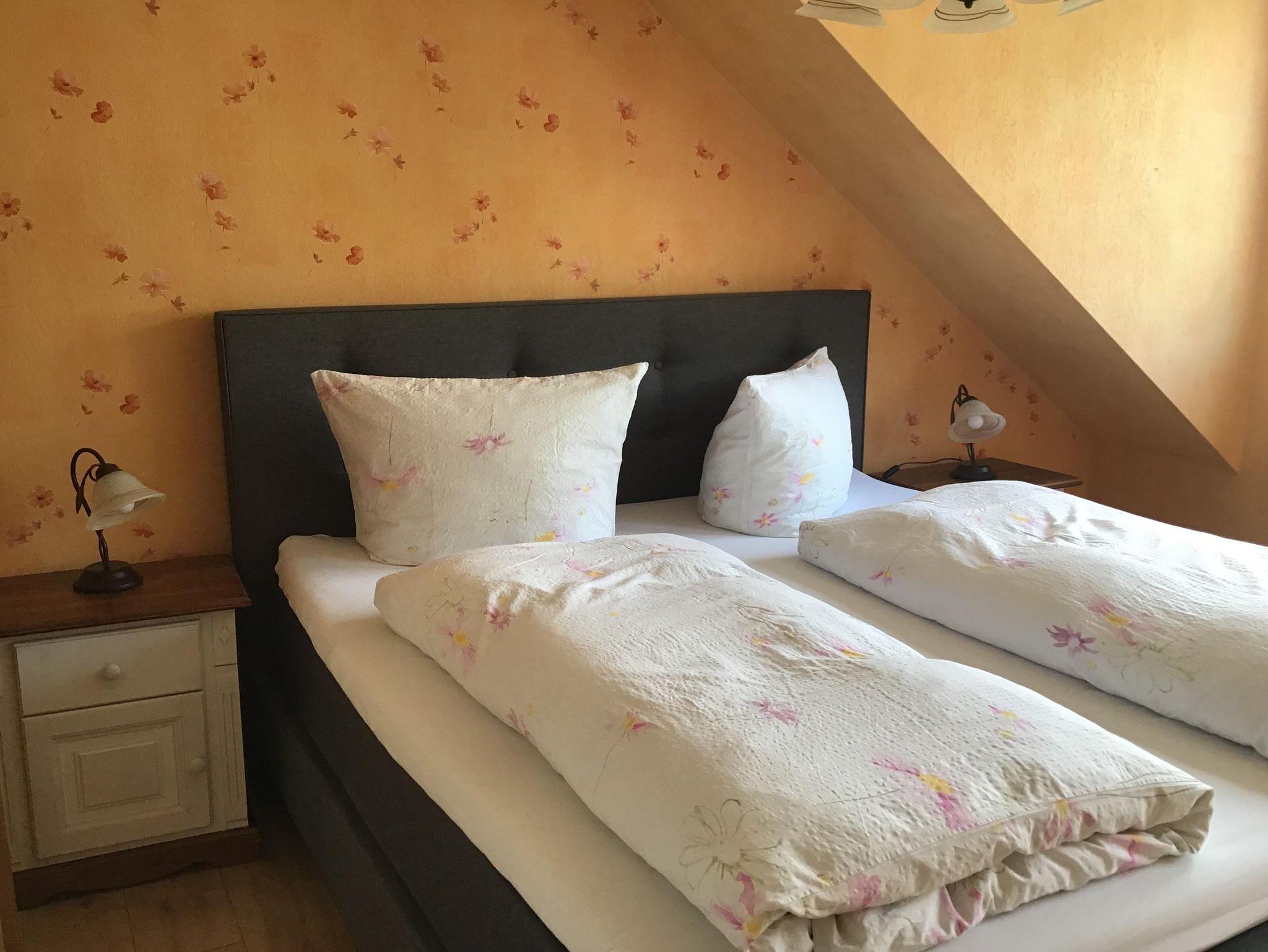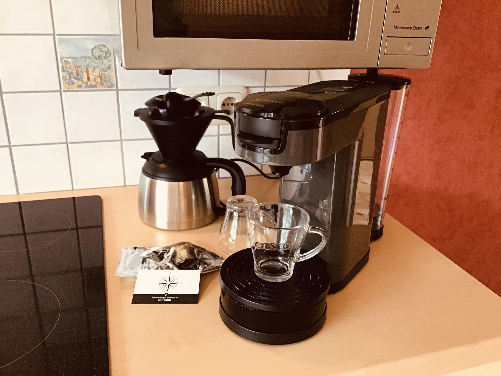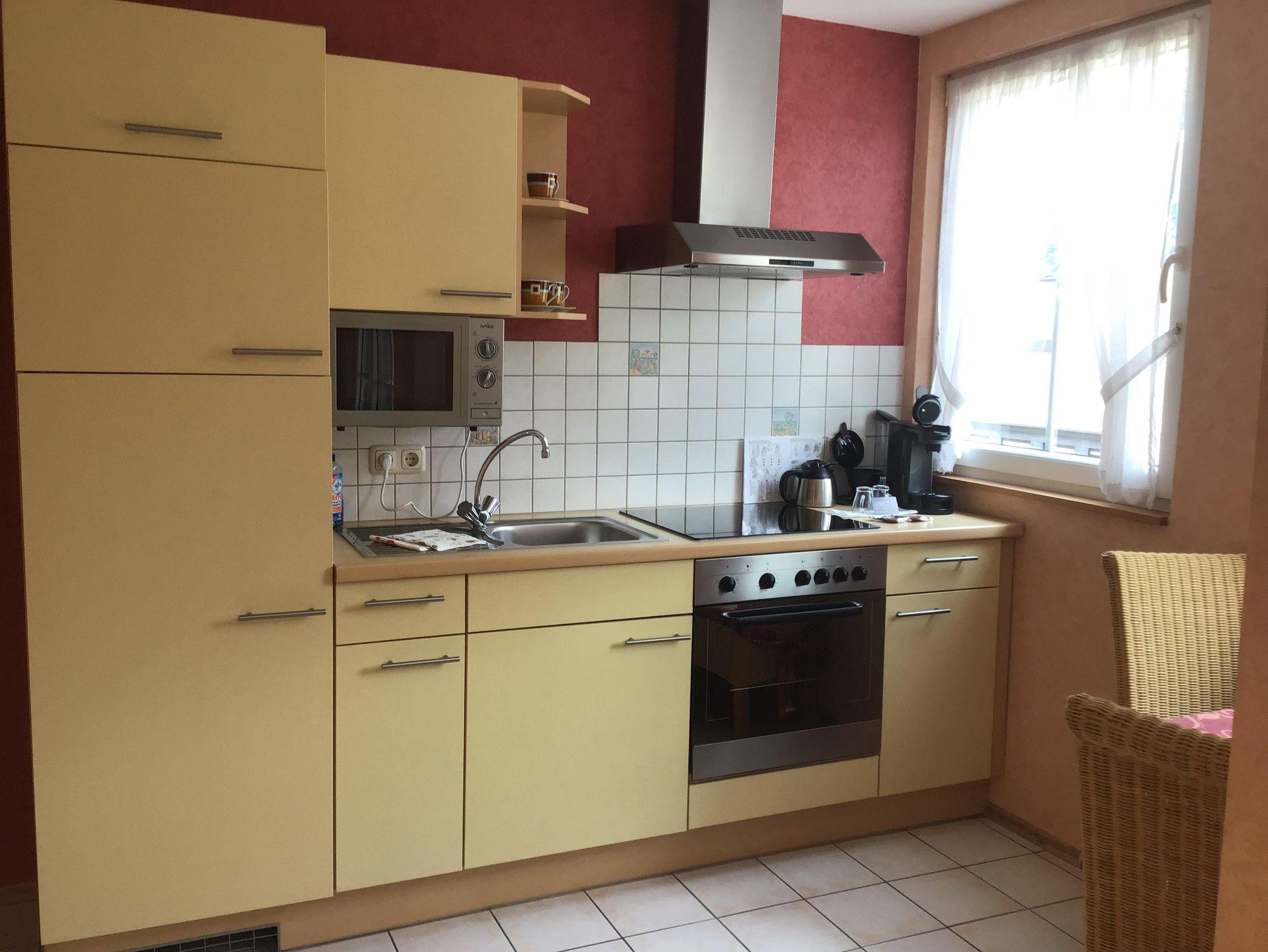 Die 42qm große Feriewohnung liegt auf der 2. Etage. Eigener Balkon mit schönem Blick auf die Mosel. Helles Schlafzimmer mit Boxspringbett. Vollausgestattete Küche mit Ceranfeld und Backofen, Mikrowelle uns Kühlschrank mit Gefrierfach.