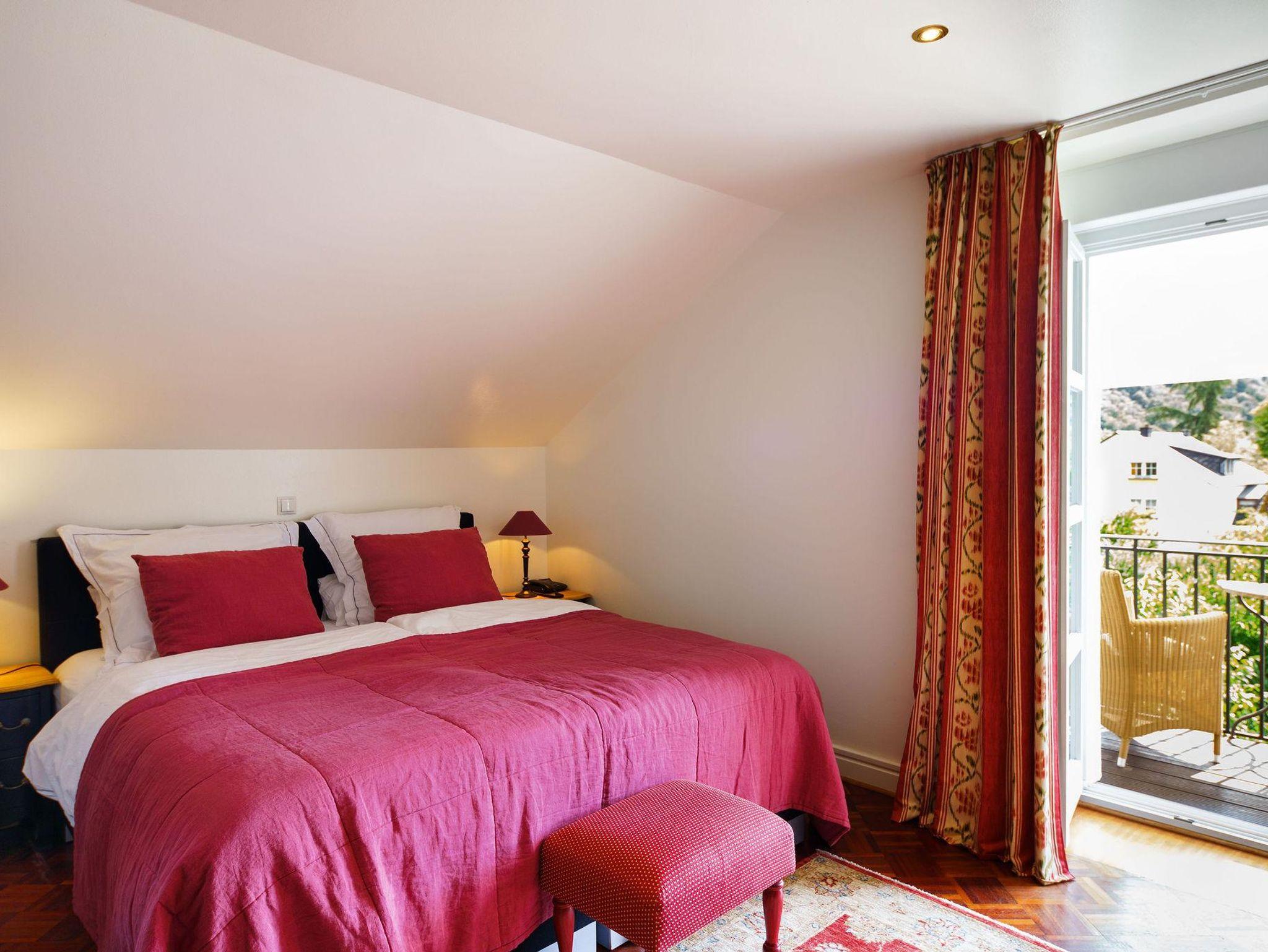 Warme Farben und hochwertige aufeinander abgestimmte Stoffe im Landhausstil geben jedem Zimmer eine individuelle Gemütlichkeit. Der Blick auf den mediterranen Garten und die prächtige Mosellandschaft machen den Aufenthalt zu einem Erlebnis.