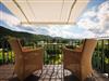 Zimmer im Landhausstil, französische Stoffe, Boxspringbett, DU/WC,Haartrockner, Kosmetikspiegel, Flachbild- TV, Minibar, Terrasse mit wunderschönen Blick auf Mosel und Garten, kostenfreies W-LAN, Verwöhn Frühstück vom Buffet