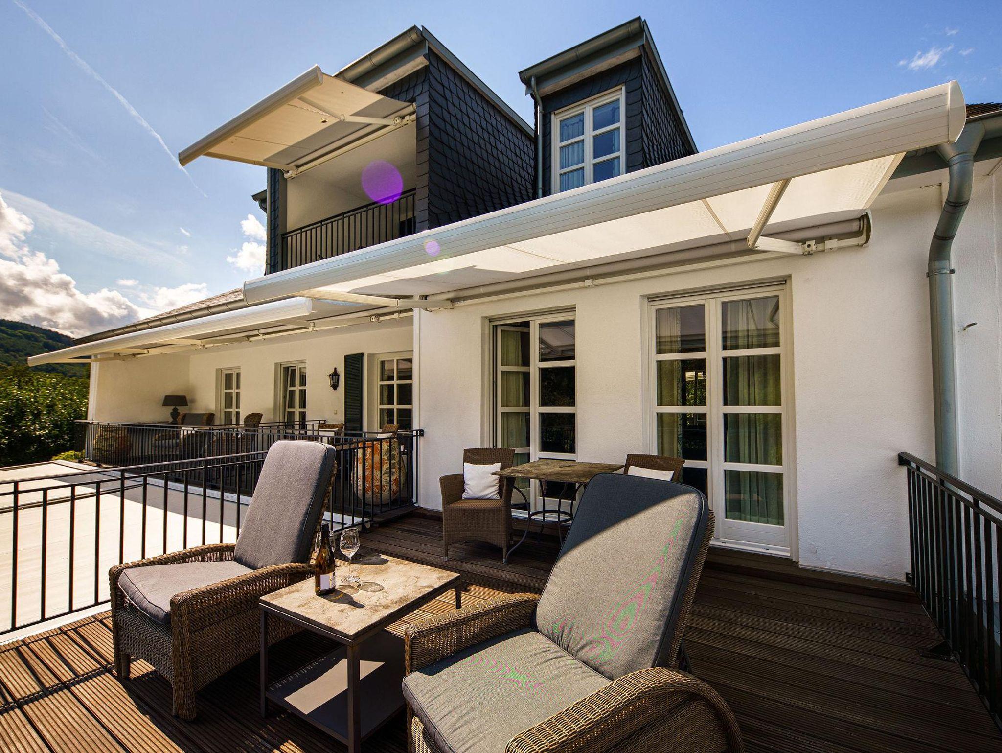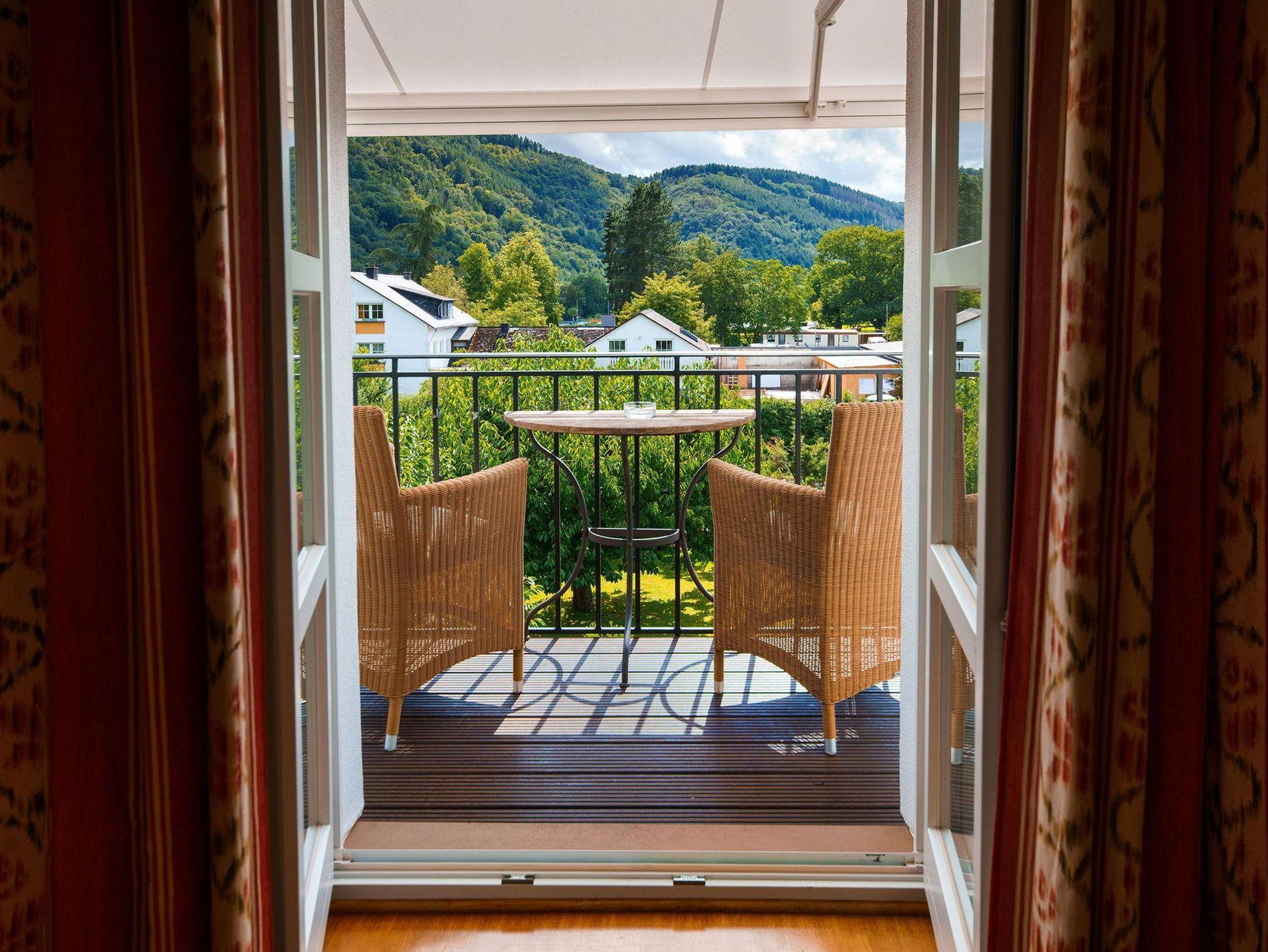 Warme Farben und hochwertige aufeinander abgestimmte Stoffe im Landhausstil geben jedem Zimmer eine individuelle Gemütlichkeit. Der Blick auf den mediterranen Garten und die prächtige Mosellandschaft machen den Aufenthalt zu einem Erlebnis.