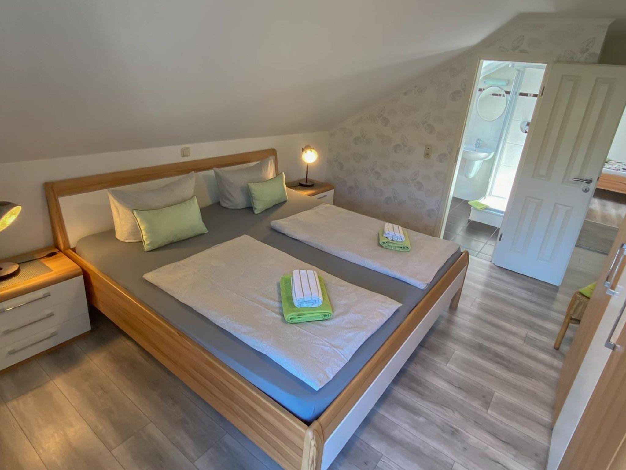 1 oder 2 getrennte Schlafzimmer mit neuen Polsterbetten, verstellbarem Lattenrost, (2. Schlafzimmer bei 2 Pers mit 15,00€ Aufpreis pro Nacht) jedes Schlafzimmer verfügt über Bad mit DU/WC, Fön und Kosmetikspiegel)