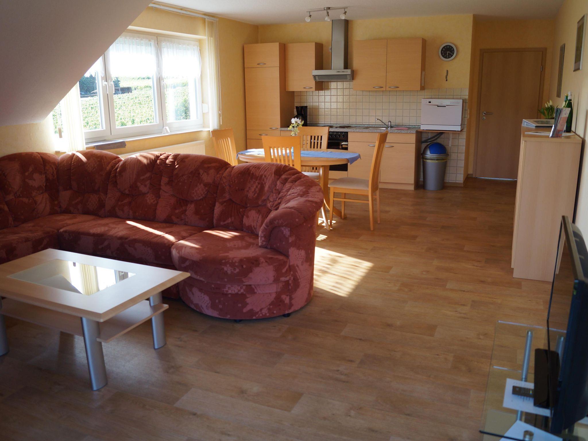 1 FEWO, 2 Pers., große Wohnküche, 1 DZ, DU/WC, großer Balkon, Zustellbett möglich, Schlafcouch für 2 Personen, Radio, TV, Brötchenservice, keine Zusatzkosten für Endreinigung, separater Eingang, Parkplatz, eigener Weinbau, Bettwäsche und Handtücher vorhanden.