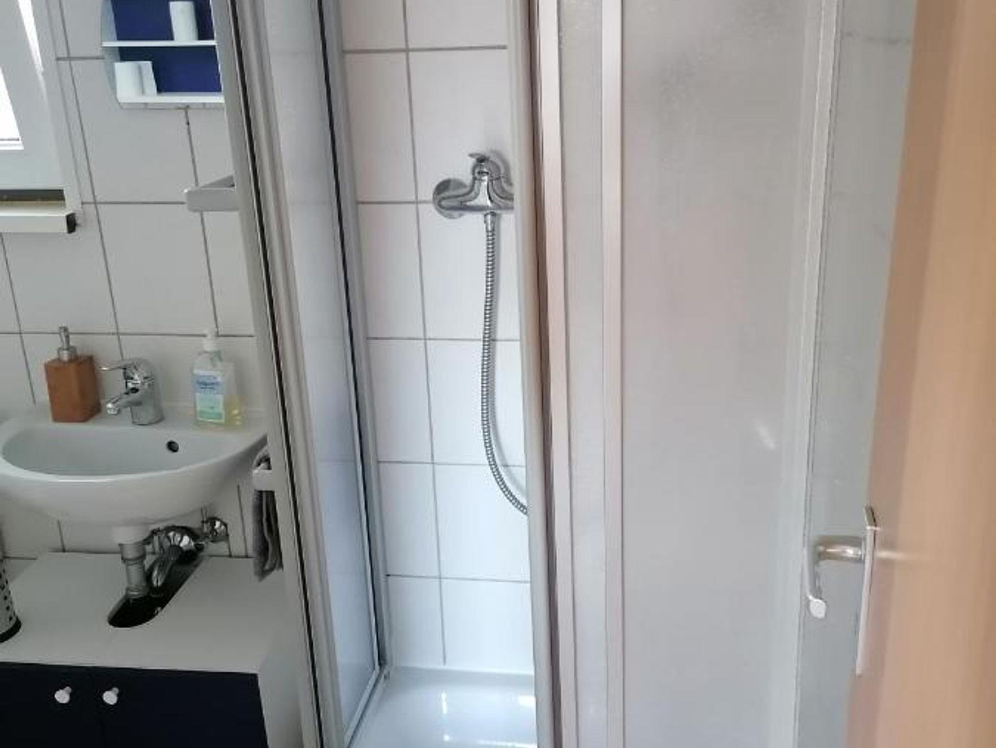 Das Badezimmer mit Dusche, Toilette und Waschbecken runden das Gesamtbild sicher ab.