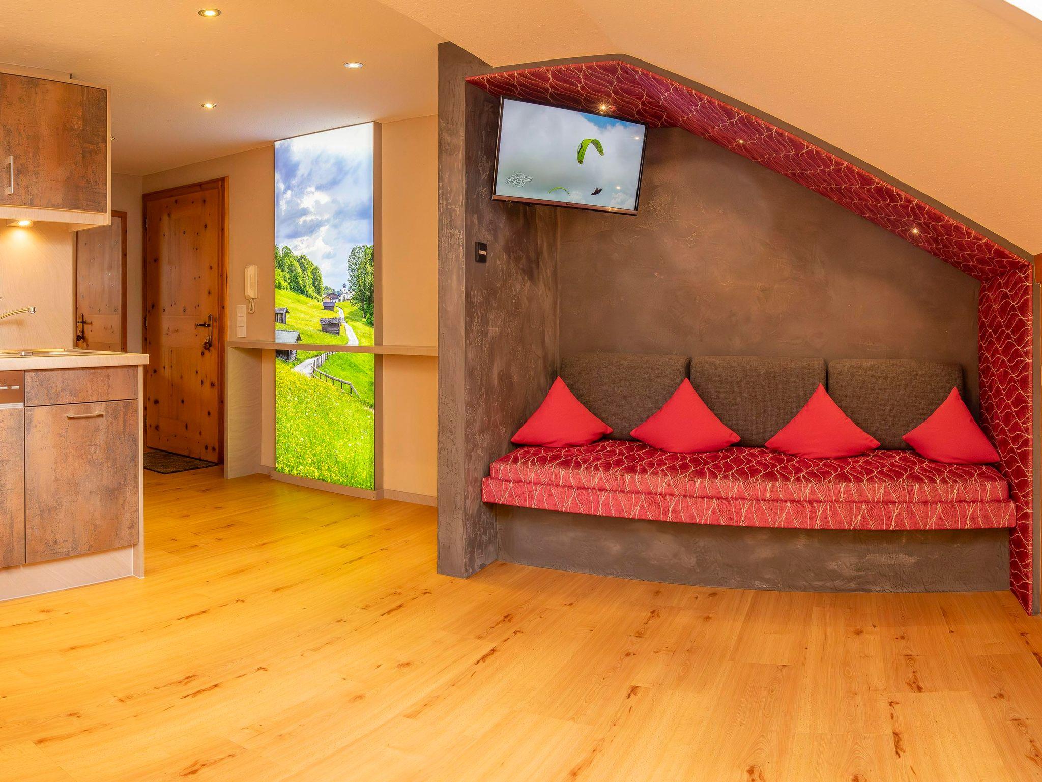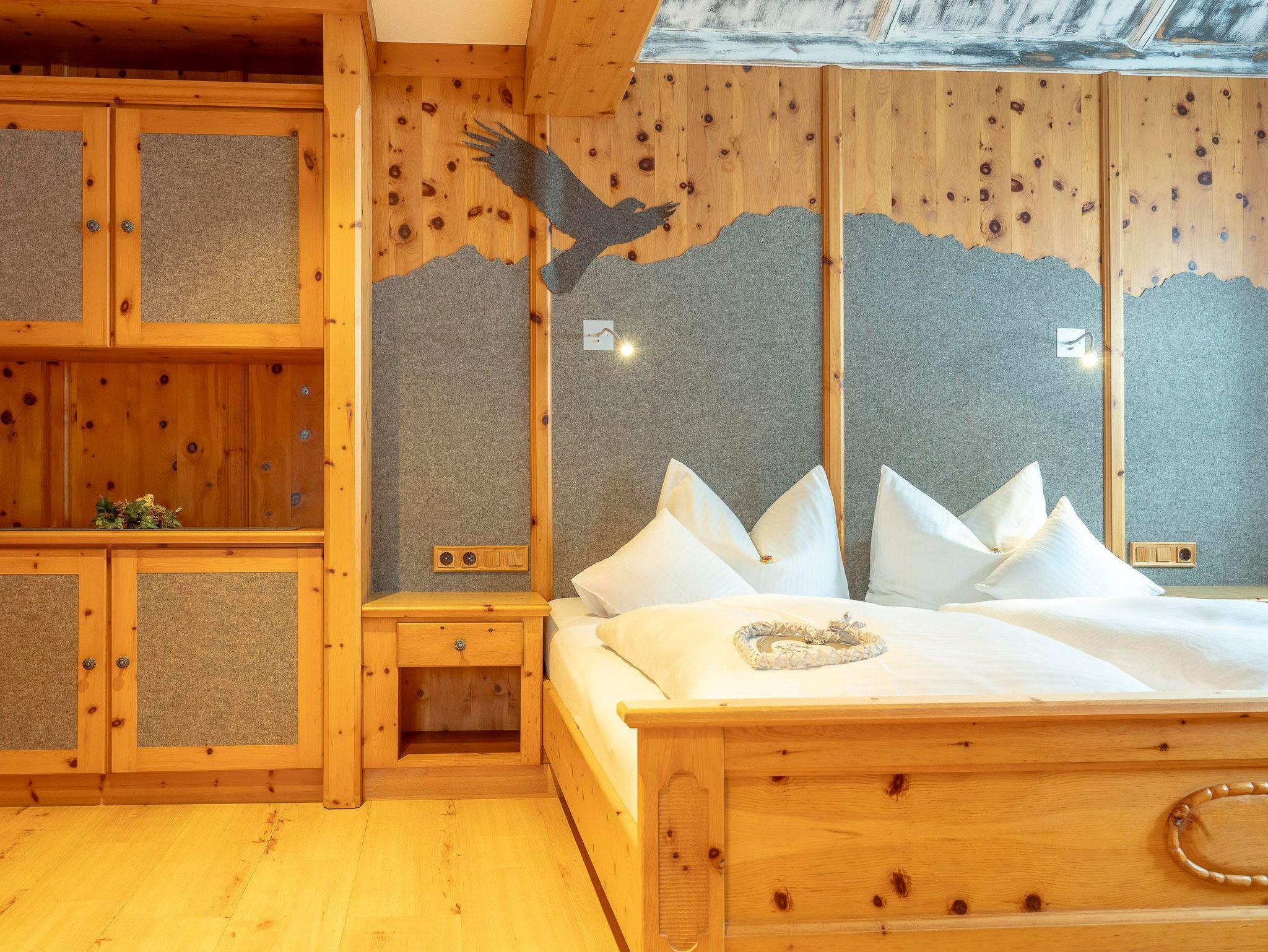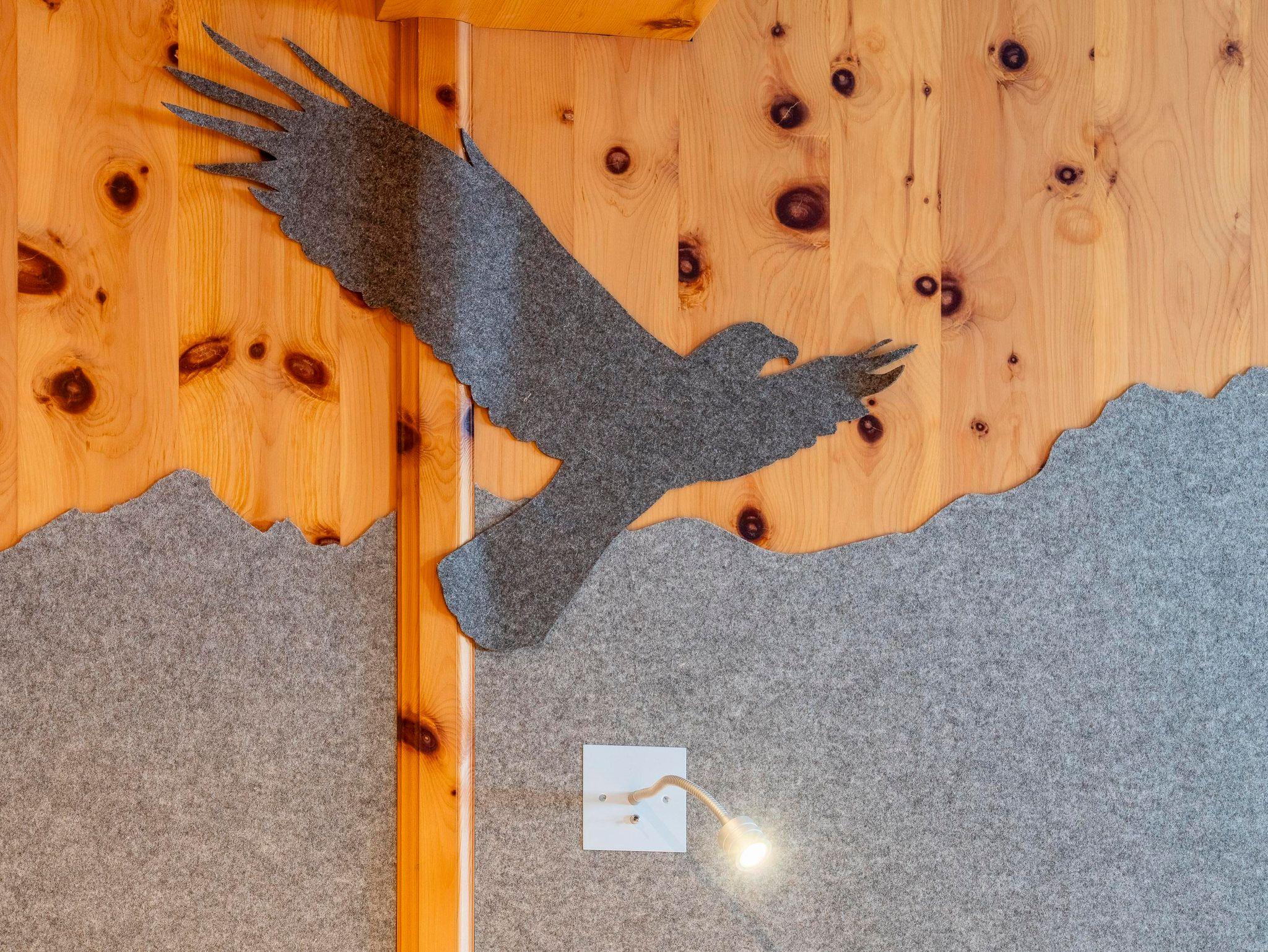 In unserer liebevoll gestalteten Ferienwohnung Adlerhorst fliegen Ihre Gedanken so frei wie die Adler über den Gipfeln. Namensgeber und Blickfang zugleich ist das kunstvoll gestaltete Adlernest unter der Mansarde – ein außergewöhnliches Detail, das unser Innenarchitekt eigens für diese Wohnung entworfen hat.