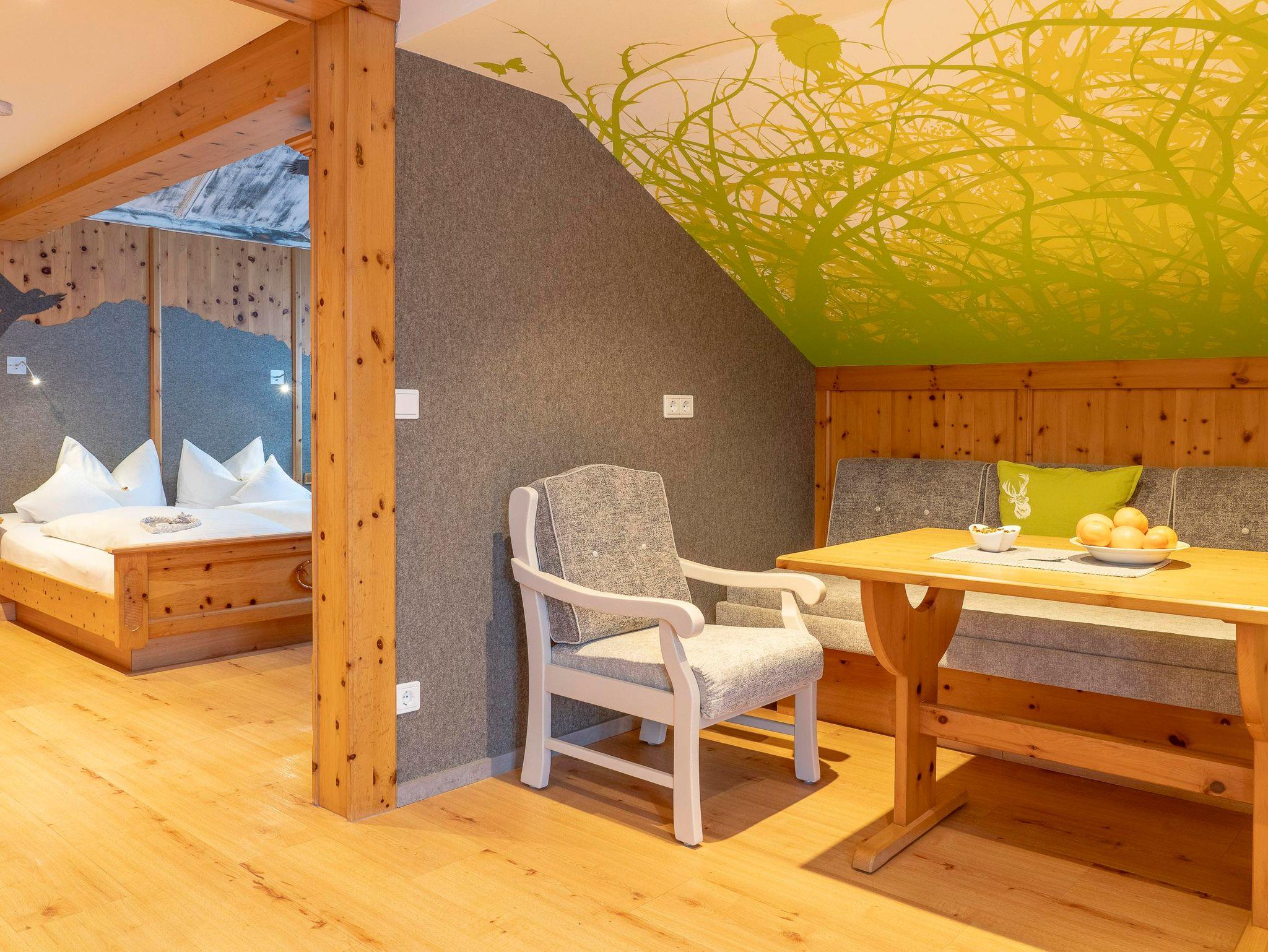 Zirbenholz, hochwertiger Lodenfilz und liebevoll ausgewählte Naturmaterialien schaffen eine Atmosphäre der Ruhe und Geborgenheit – ideal zum Durchatmen und Loslassen.