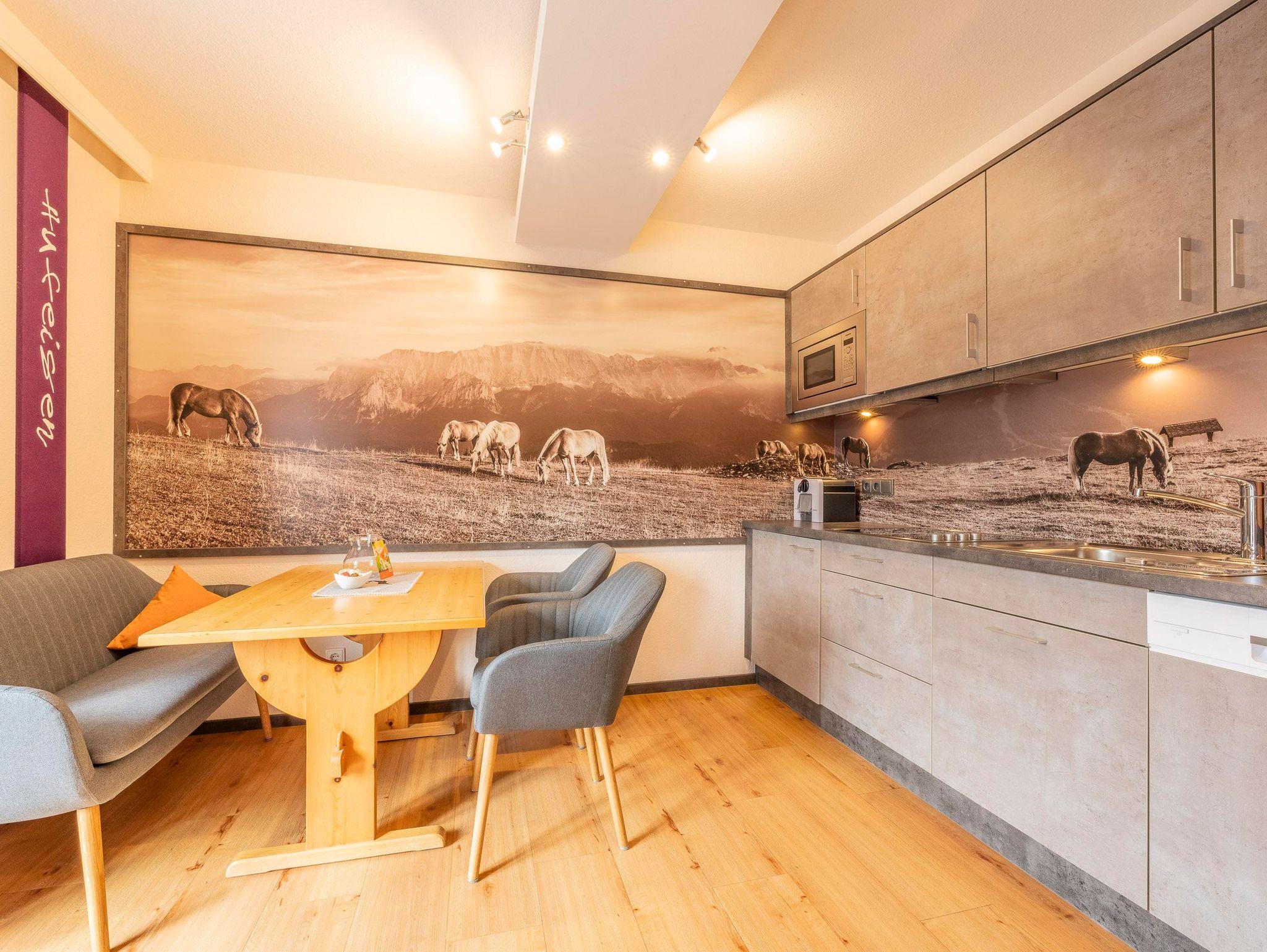Willkommen in den Ferienwohnungen Ferienglück – Ihrem Zuhause für Erholung und Naturgenuss in der traumhaften Alpenwelt Karwendel. Unser familiengeführtes Haus vereint traditionelle bayerische Bauweise mit modernen Annehmlichkeiten und bietet Ihnen neun individuell gestaltete Ferienwohnungen, die Komfort, Stil und Gemütlichkeit harmonisch verbinden. Ein besonderes Highlight jeder Wohnung ist die hochwertige Ausstattung mit Zirbenholz und naturverbundenen Materialien, die für ein gesundes Raumklima und besondere Wohlfühlmomente sorgen. Sie genießen kostenfreies High-Speed-WLAN, moderne Flachbild-TVs (teilweise zwei pro Wohnung) und voll ausgestattete Küchen mit Filter- und Nespresso-Kaffeemaschine. Für Ihre aktive Urlaubsgestaltung stehen Ihnen ein kleiner Fitness- und Freizeitraum, Leihfahrräder, Schlitten und Nordic-Walking-Stöcke zur Verfügung. Ihre Sportausrüstung können Sie sicher in der abschließbaren Ski- und Fahrradgarage unterbringen. Als unser Gast profitieren Sie zudem von der AlpenweltCard, mit der Sie unter anderem Busse in der Region kostenfrei nutzen können. Direkt am Haus stehen Parkplätze und eine Wallbox für E-Autos (11 kW) bereit – perfekt für entspannte Anreisen und umweltbewusste Mobilität.