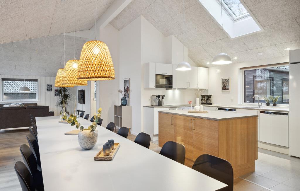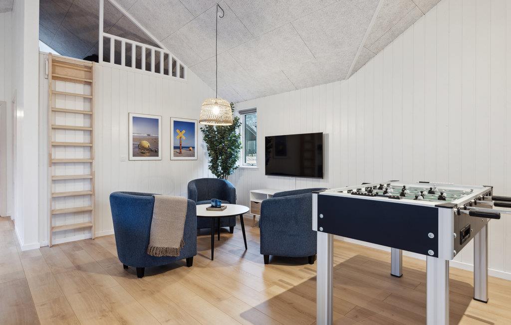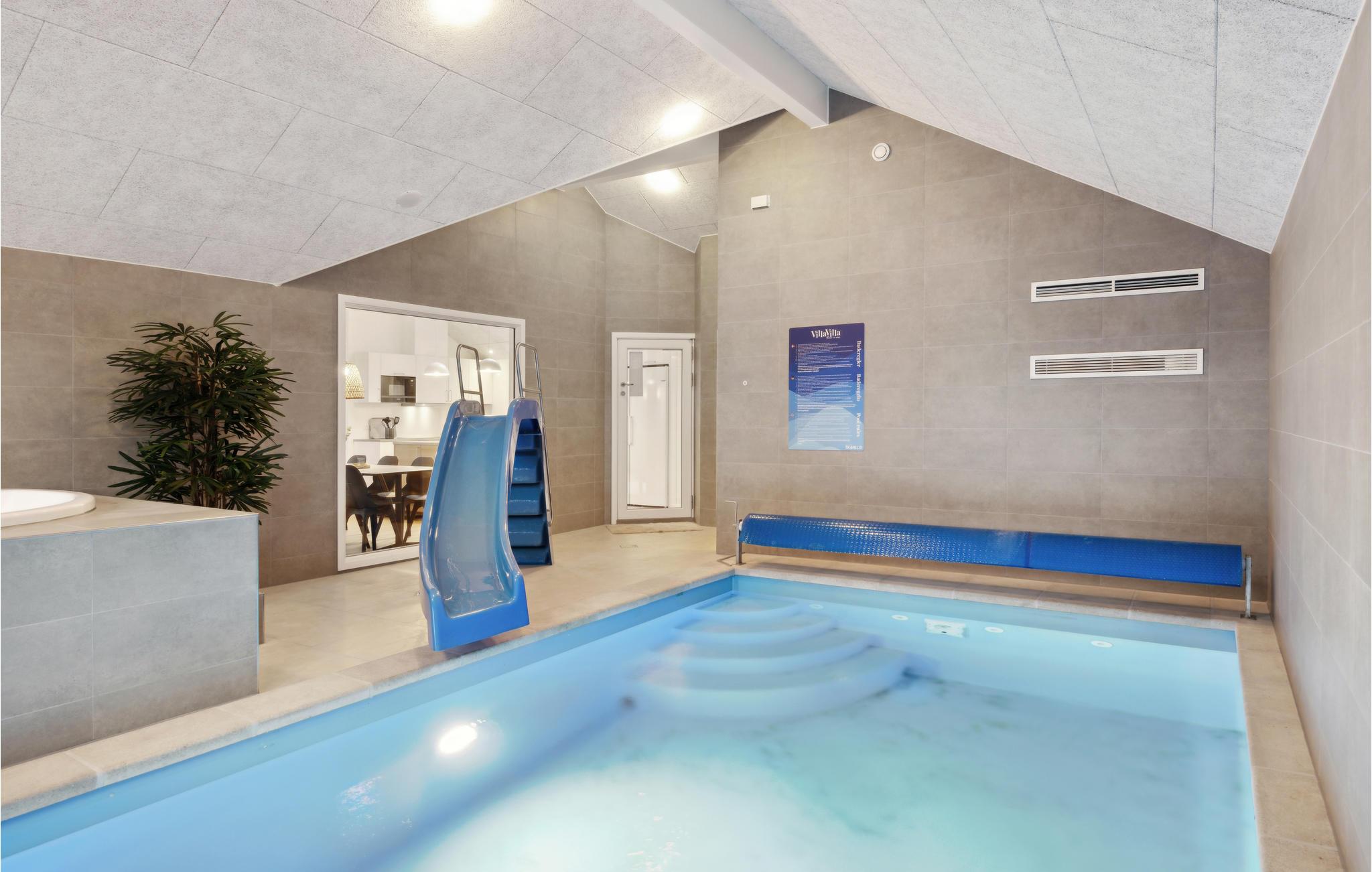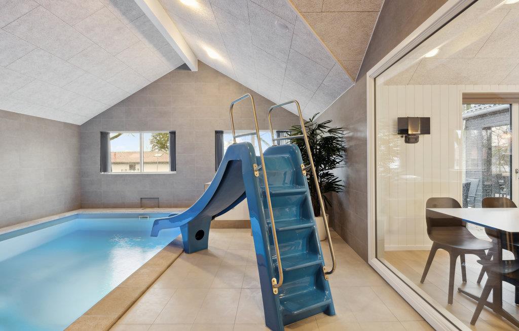 Skønt og stort sommerhus med indendørs pool, jacuzzi og sauna. Dette moderne feriehus ligger i en lille feriehusby nær Krakow am See og ikke langt fra Krakow-søen. Det tilbyder en høj kvalitet, lyst interiør og plads og komfort til din familieferie eller en ferie med venner. I den rummelige opholdsstue med åbent køkken kan I lave mad og slappe af sammen og tilbringe omgængelige timer ved det store spisebord med lækre måltider eller en aften med spil. Udfordr hinanden til en omgang bordtennis, bordfodbold eller dart i aktivitetsrummet og nyd en kold forfriskning i baren ind i. Den smukke pool med vandrutsjebane inviterer store og små til at tilbringe timevis af sjov. Eller nyd en massage i den store 6-personers jacuzzi og slap derefter af i din private sauna. Huset har syv soveværelser og en hems med fire madrasser, hvilket er særligt godt for børn, der gerne vil trives der. De tre badeværelser fuldender tilbuddet. På den rummelige terrasse er der plads til afslappende timer udendørs, mens børnene slipper dampen ud i haven. Der er også en legeplads på pladsen, som giver variation for de små gæster. Krakow am See er indlejret i det maleriske landskab i Mecklenburg Schweiz og Mecklenburg Lake District, hvilket gør det til en drømmedestination for elskere af uforglemmelige naturoplevelser. Uanset om det er en omfattende vandretur i Nebeltal, fuglekiggeri i Krakower Obersee naturreservat eller en tur til udsigtstårnet på Jörnberg, hvorfra du kan nyde en fantastisk udsigt over søen og den omkringliggende natur, kan du blive fortryllet af skønheden af landskabet overalt. I Krakow am See kan du slentre gennem den idylliske gamle bydel, beundre charmerende historiske bygninger, stoppe ved en café og fortsætte din tur langs søpromenaden, hvor du også kan leje både. Tag på spændende dagsture med hele familien, for eksempel til Güstrow Slot, Müritz Bjørneskov, Friluftsmuseet Agroneum Alt Schwerin eller Malchow Abeskoven, hvor der også er en sommerkælkebakke. En uforglemmelig ferie med mange aktiviteter venter på dig!