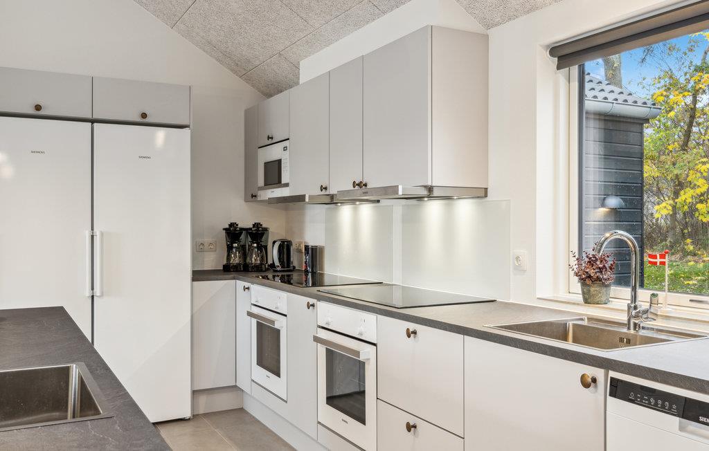 På den rummelige terrasse er der plads til afslappende timer udendørs, mens børnene har det sjovt i haven. Der er også en legeplads på stedet, som giver variation for de små gæster.
