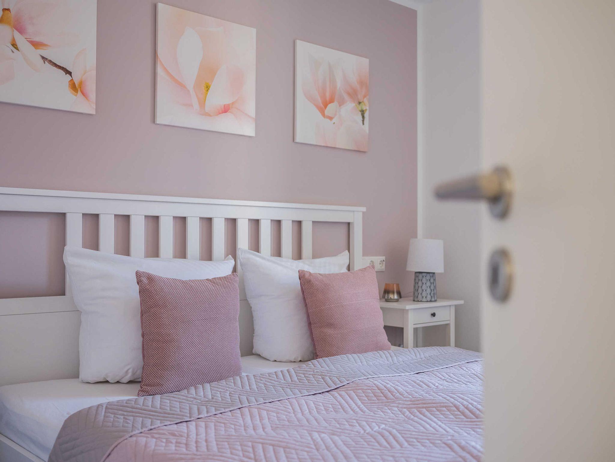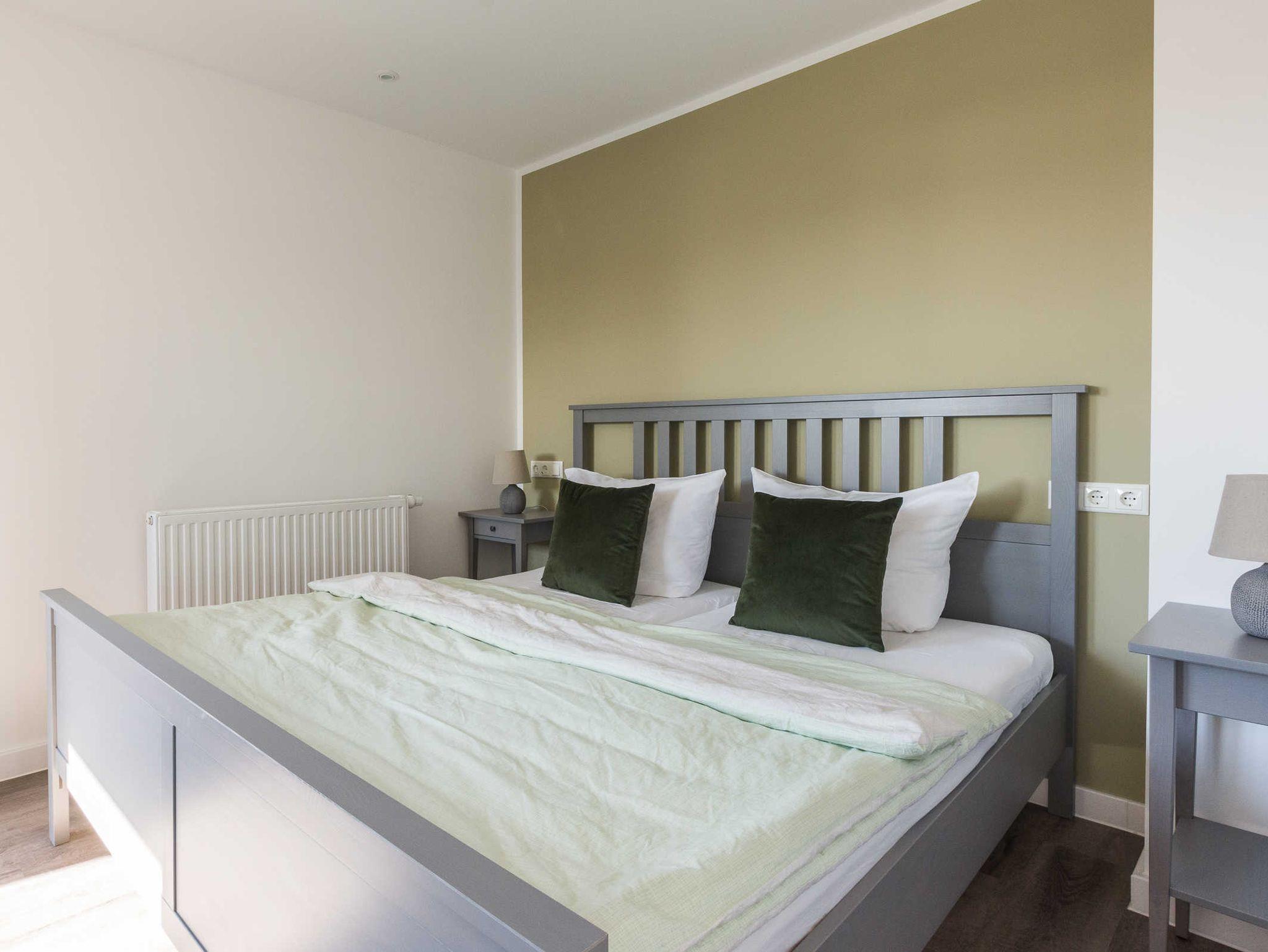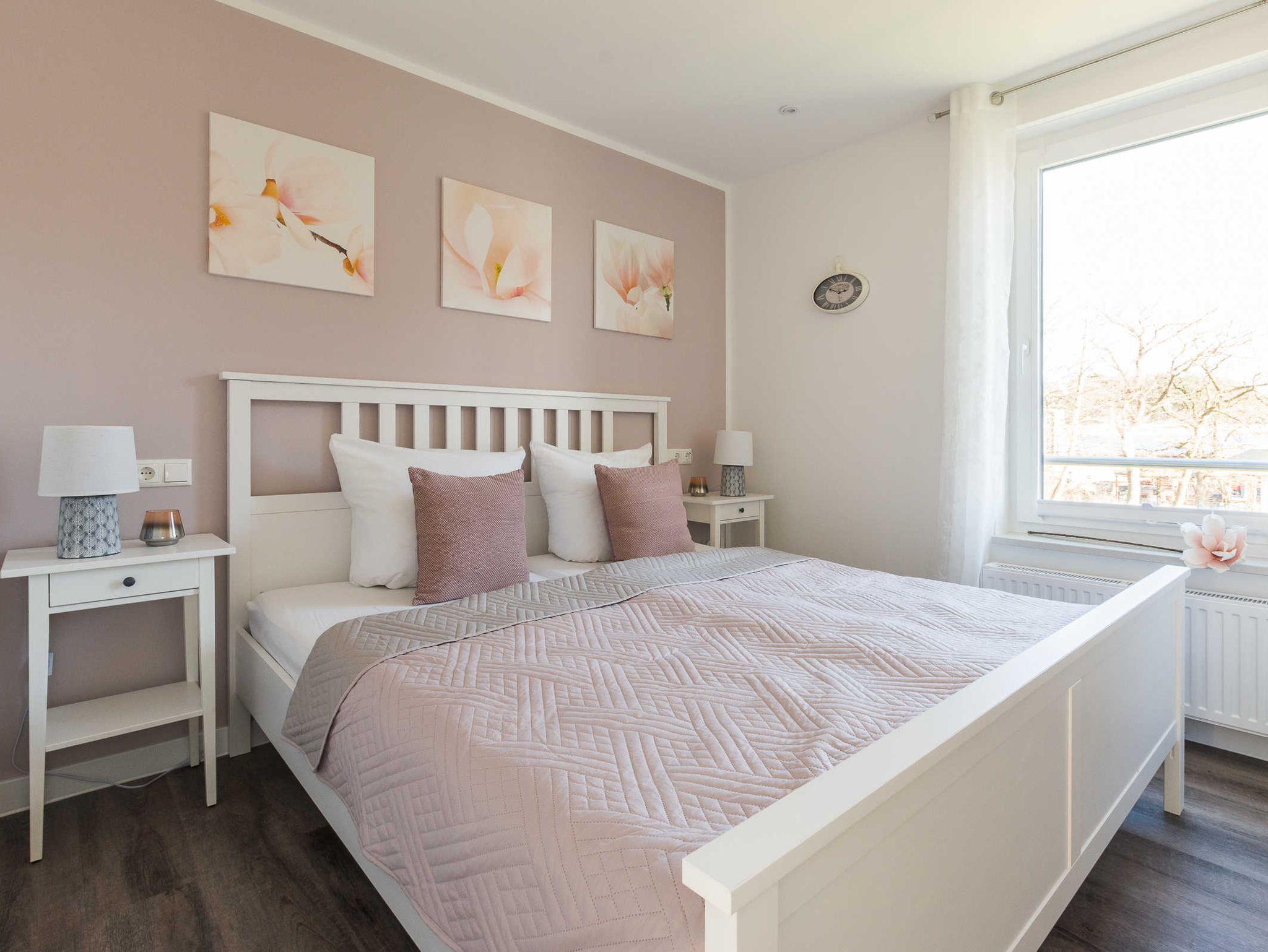 Doppelbett 180 x 200, Fernseher, Leselampen, Sideboard, elektrische Rollläden, kleiner Balkon