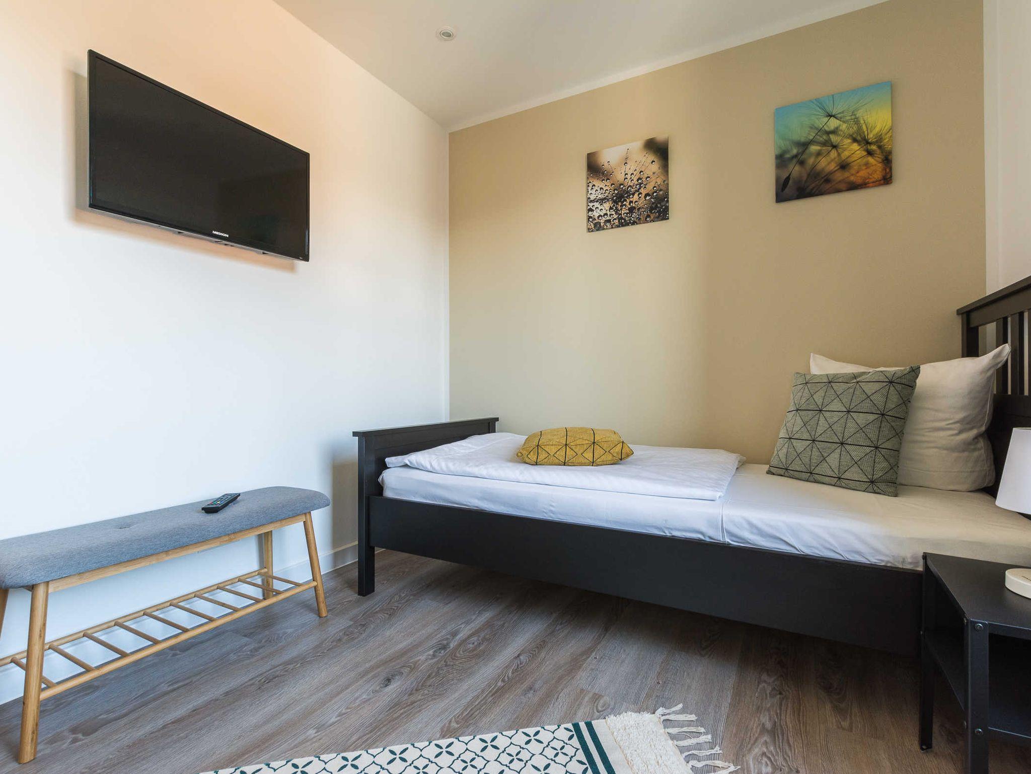 2 Einzelbetten 90 x 200, Kleiderschrank, Leselampen, Fernseher