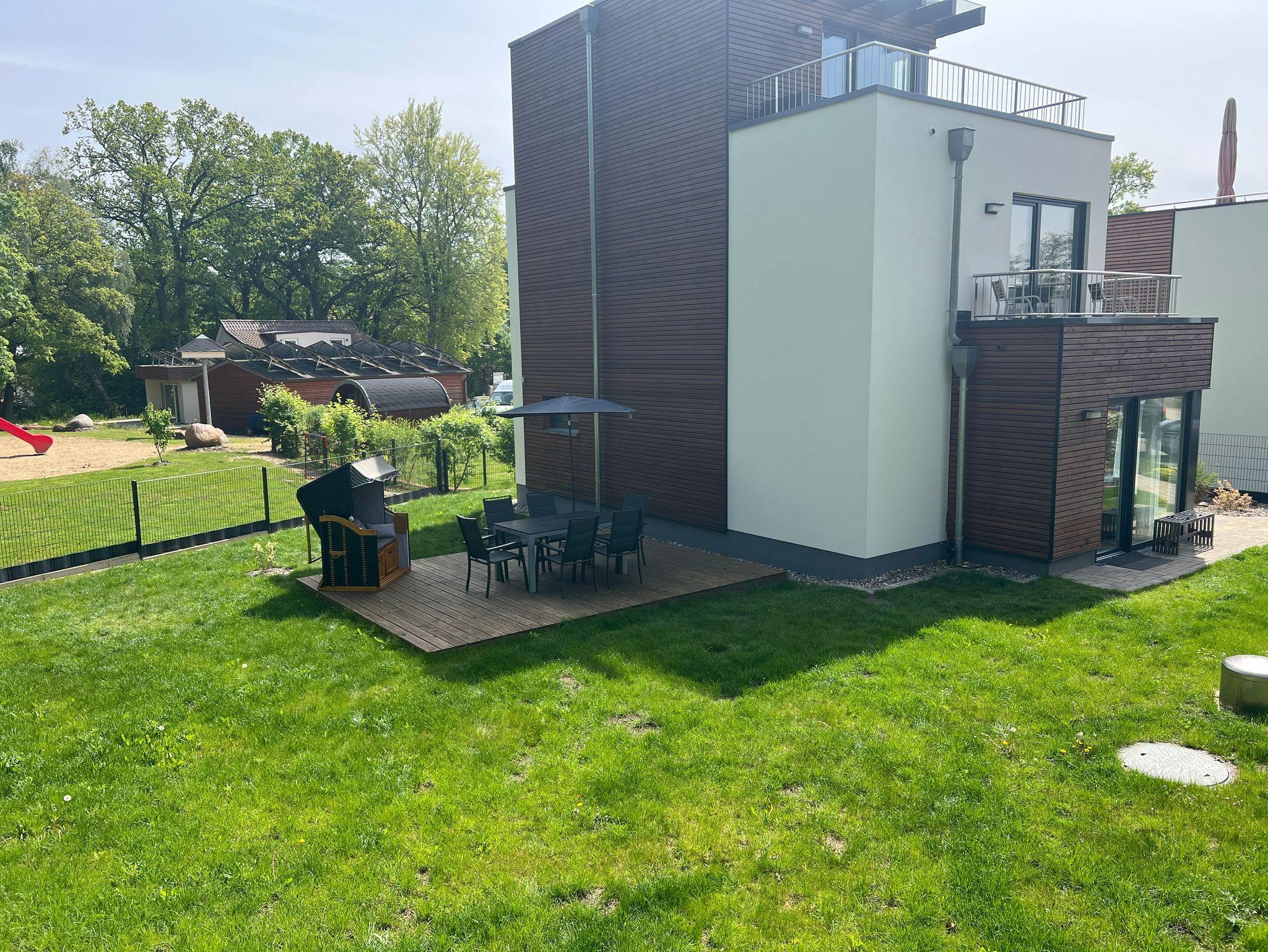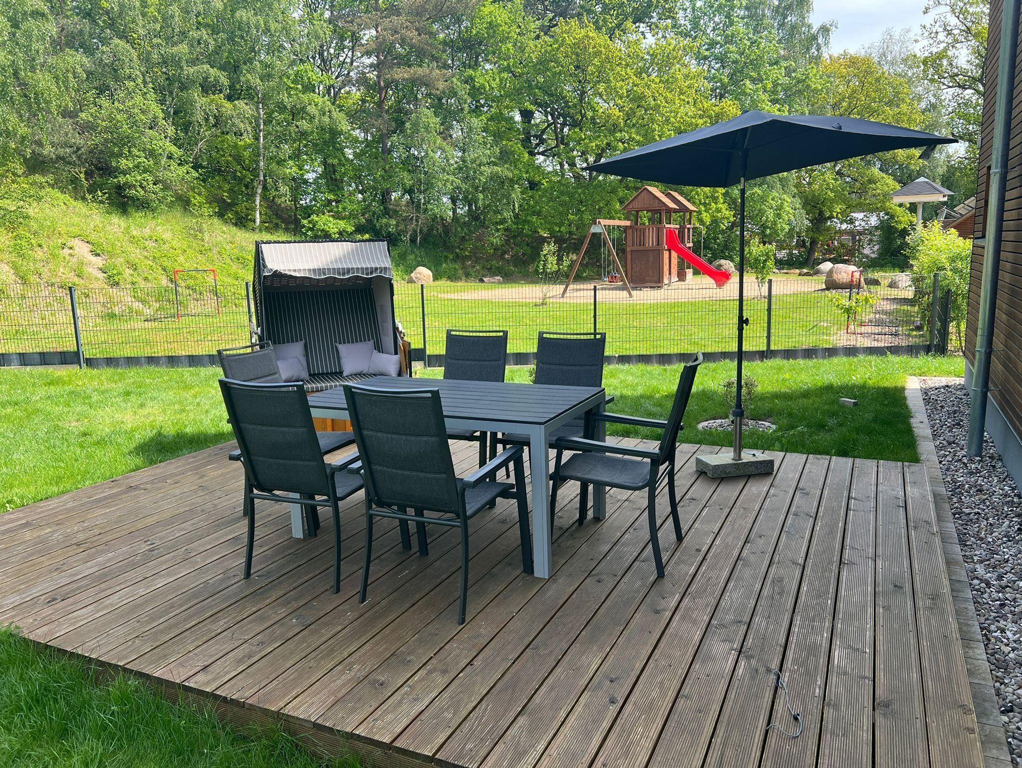 ? Vollständig eingezäuntes Grundstück mit 575 m², Strandkorb, große Sonnenliege