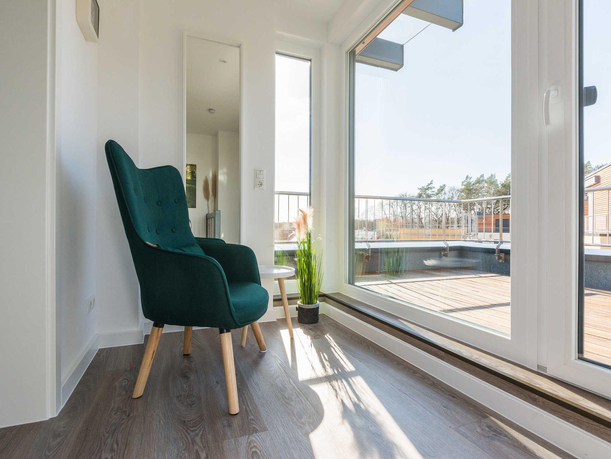 Das Badezimmer ist neben einer Wellnessdusche, WC und Waschtisch mit einer angrenzenden Sauna für 4 Personen ausgestattet. Für eine Abkühlung sorgt der Altdorfer See in ca. 100 m Entfernung oder Sie entspannen auf unserer großen Dachterrasse mit freiem Blick.